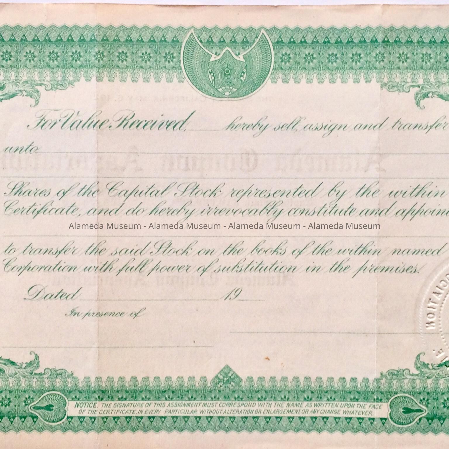 Stock certificate of the Alameda Coupon Association, 1959Entry/Object ID