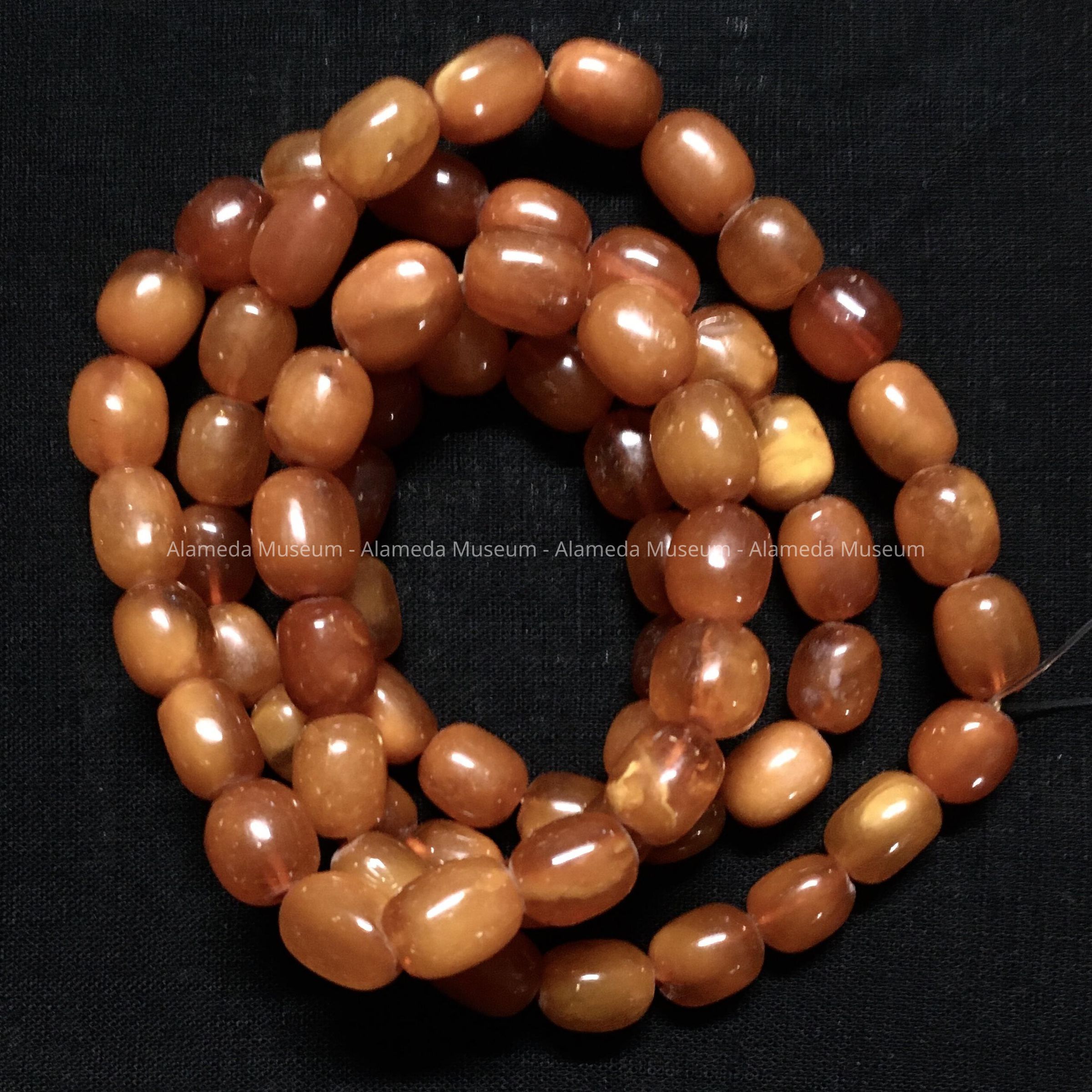 History of Object: Amber beads of Mrs. Samuel M. Haslett, mother of the donor and an old time resident of Alameda.