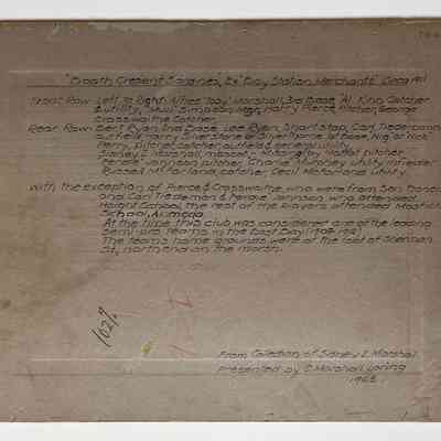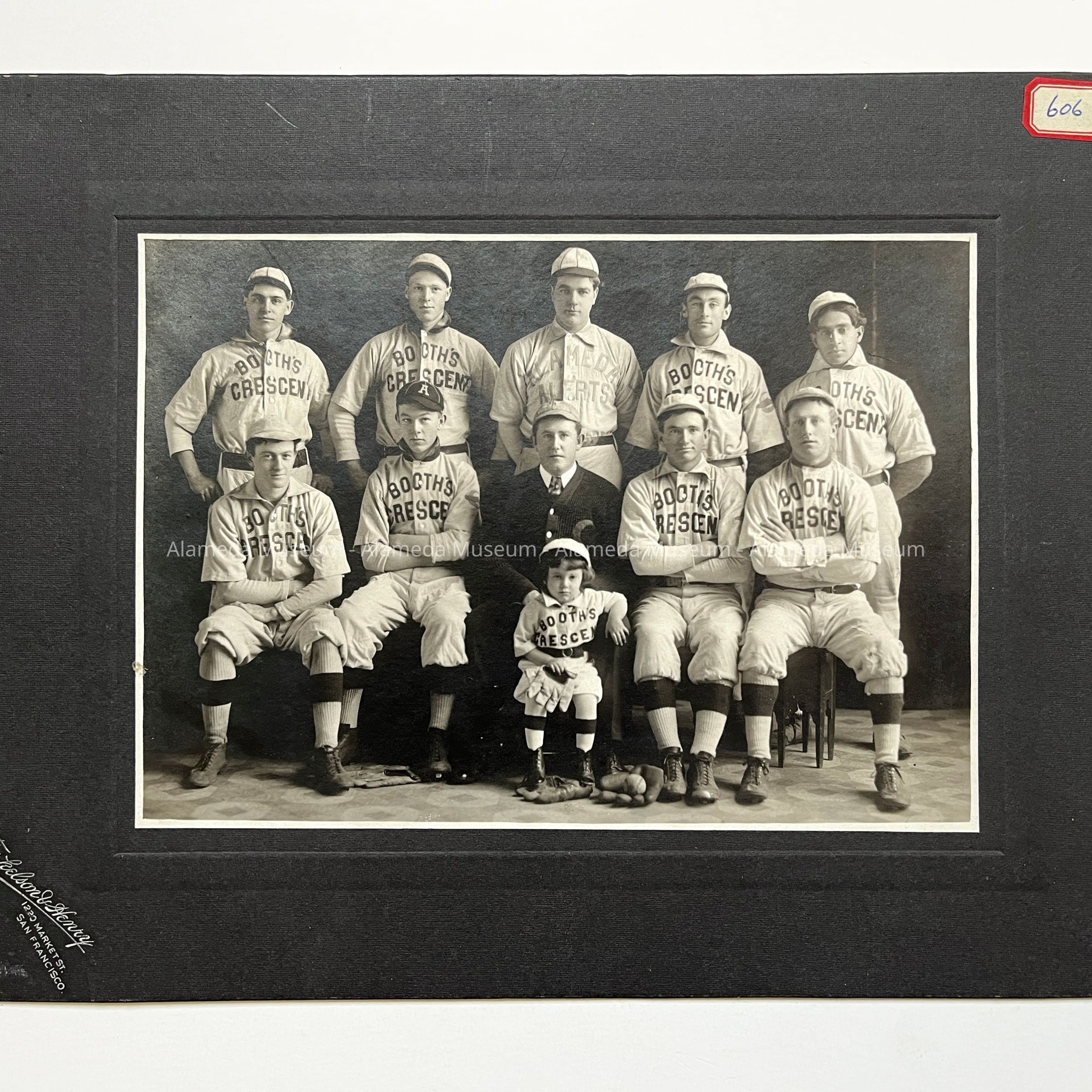History of Object: Baseball team " Booths Crescent Sardines", sponsored by the Bay Station merchants, in a studio portrait. Members are identified on the verso. (Same image as Acc. No. 97.492.1.)