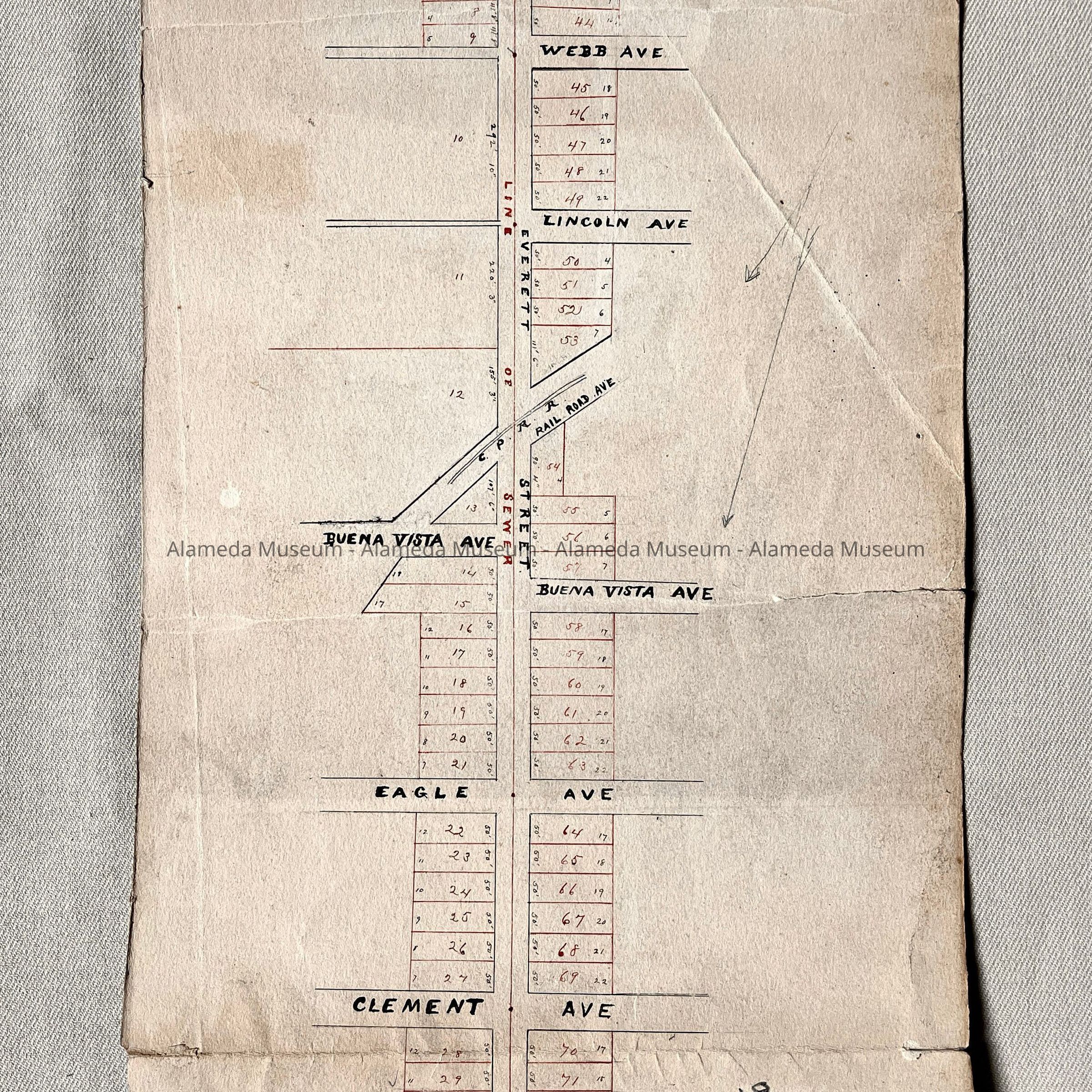 Map of Everett Street with numbered individual lots. Map extends from Santa Clara to Blanding Avenue.