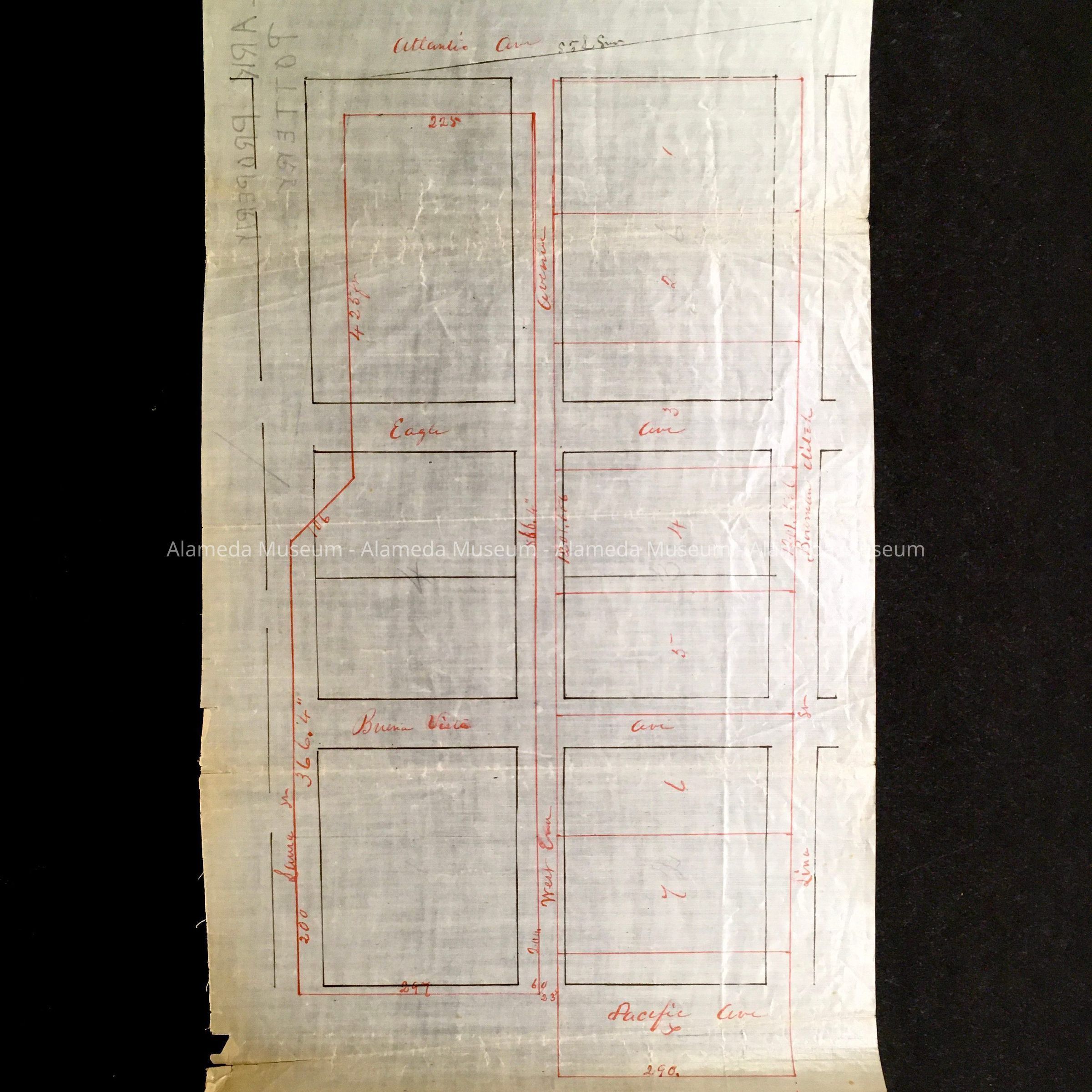 Subdivision map entitled, “Clark Pottery Property”. Property located in the far West end bordered by Pacific and Atlantic Avenues in the vicinity of Fourth Street.