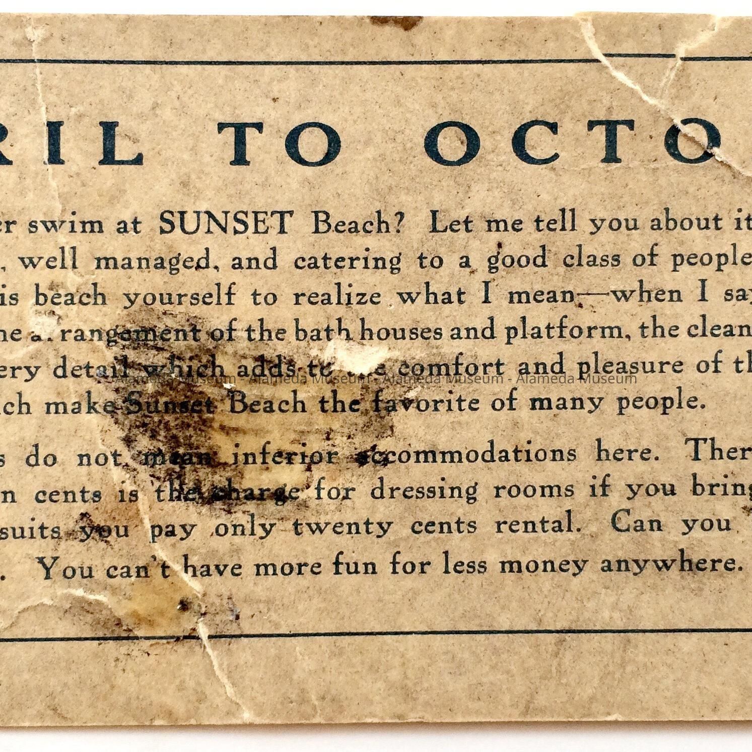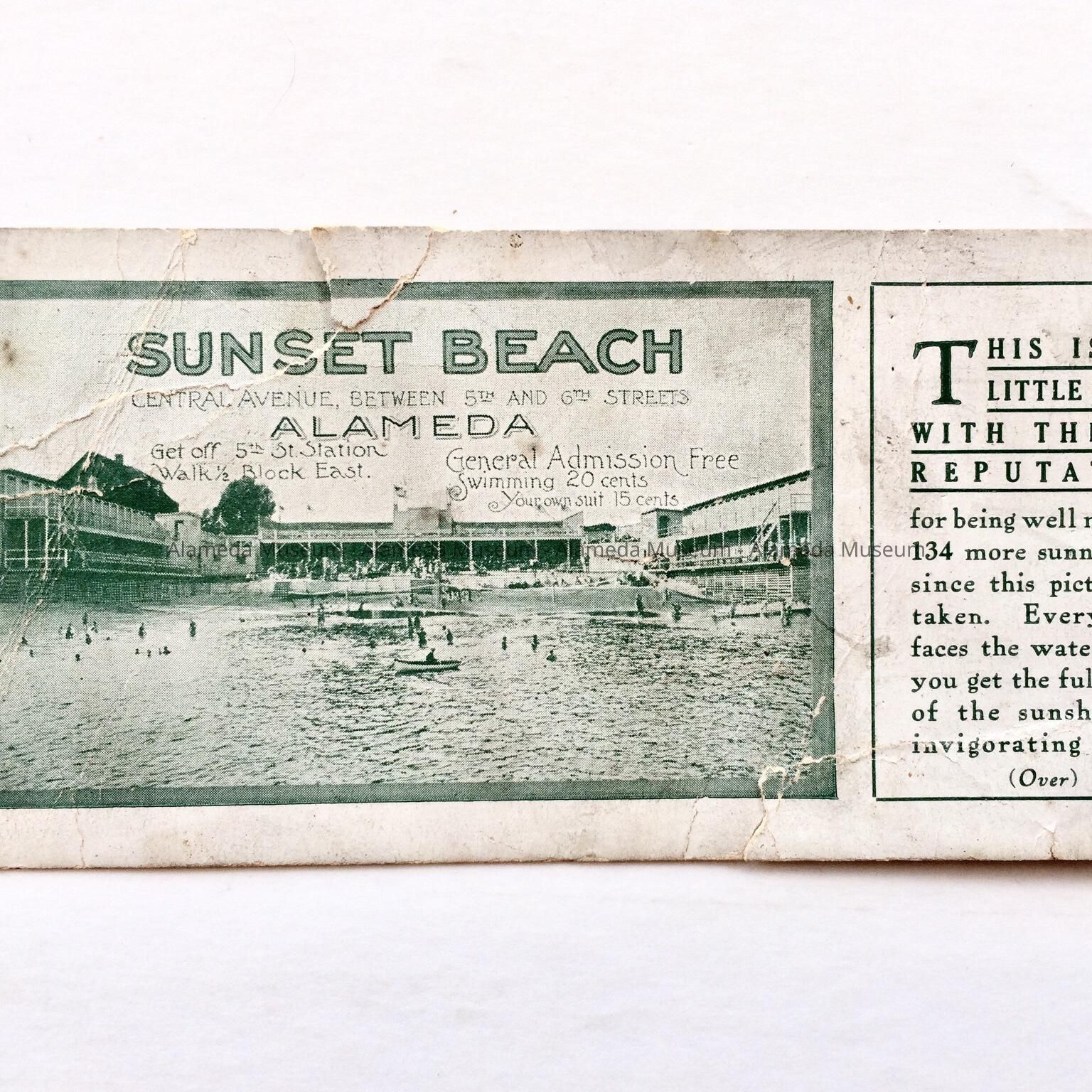History of Object: Advertising card for Sunset Beach, Central Avenue, between 5th and 6th Streets, Alameda, Calif.