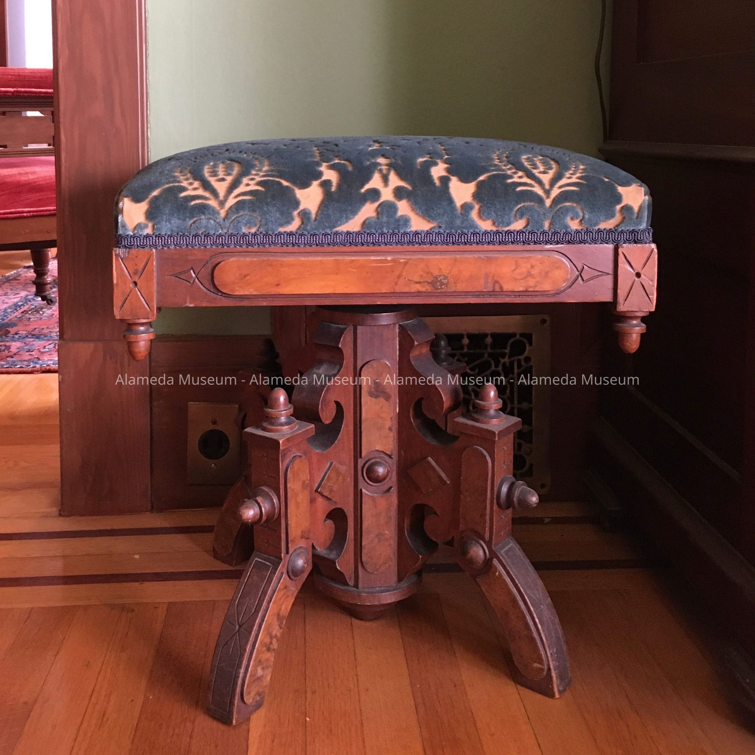 HISTORY OF OBJECT: PIANO STOOL THAT BELONGED TO THE FAMILY OF THE LATE DR. PAUL SHUMAKER,1115 BAY STREET, ALAMEDA. THE FAMILY PURCHASED THE HOUSE IN 1942 AND LIVED THERE UNTIL 2009.