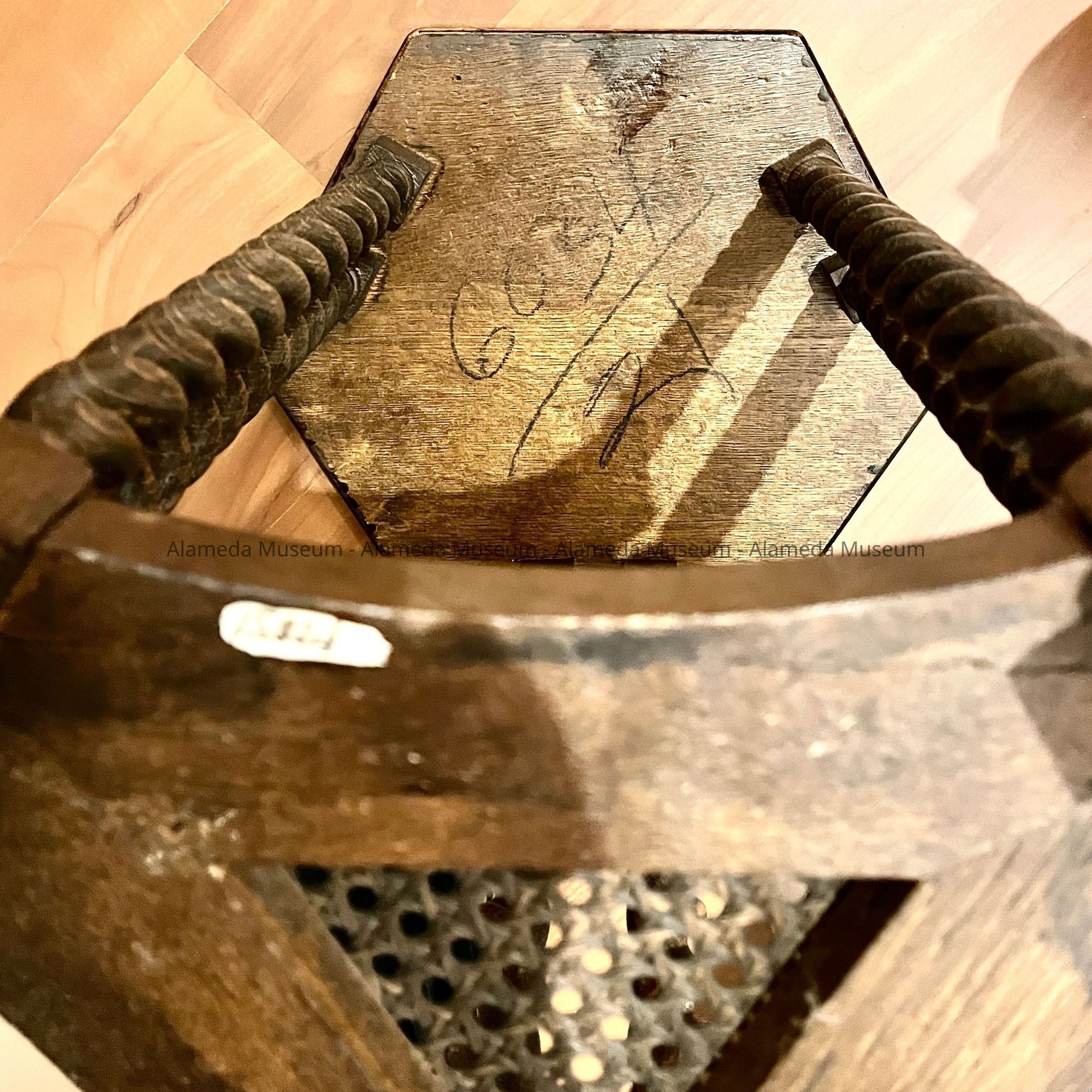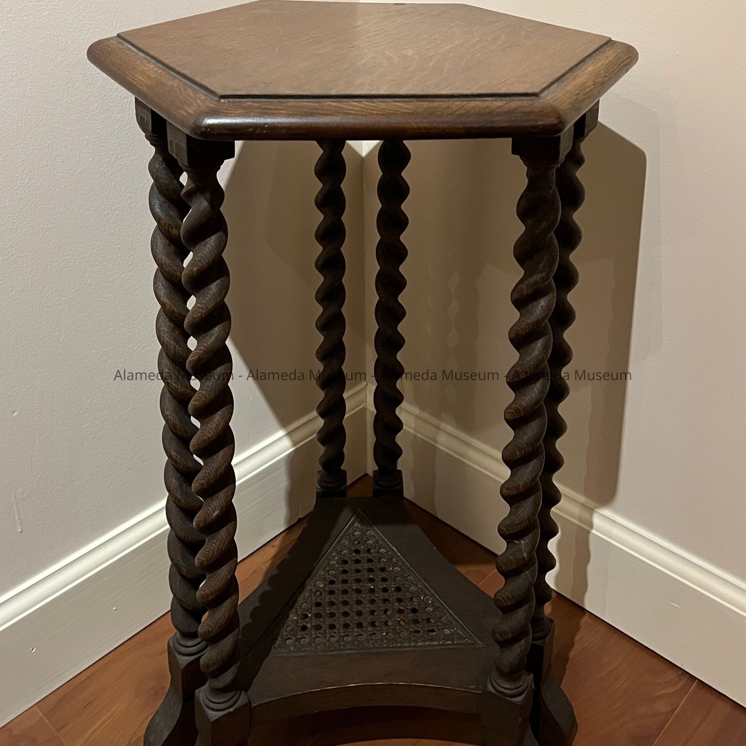 AN UNUSUAL PLANT STAND OR SIDE TABLE OF OAK, ORIGINALLY FROM THE HENRY H MEYERS' HOUSE, 2021 ALAMEDA AVENUE, ALAMEDA.