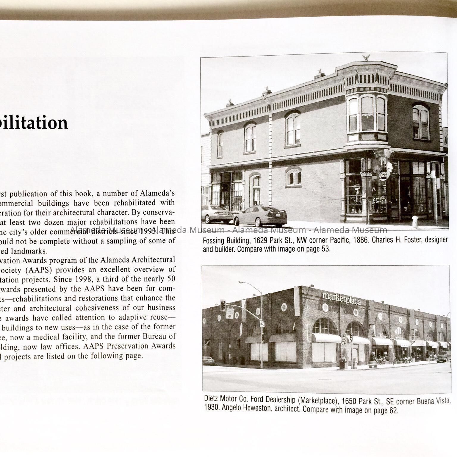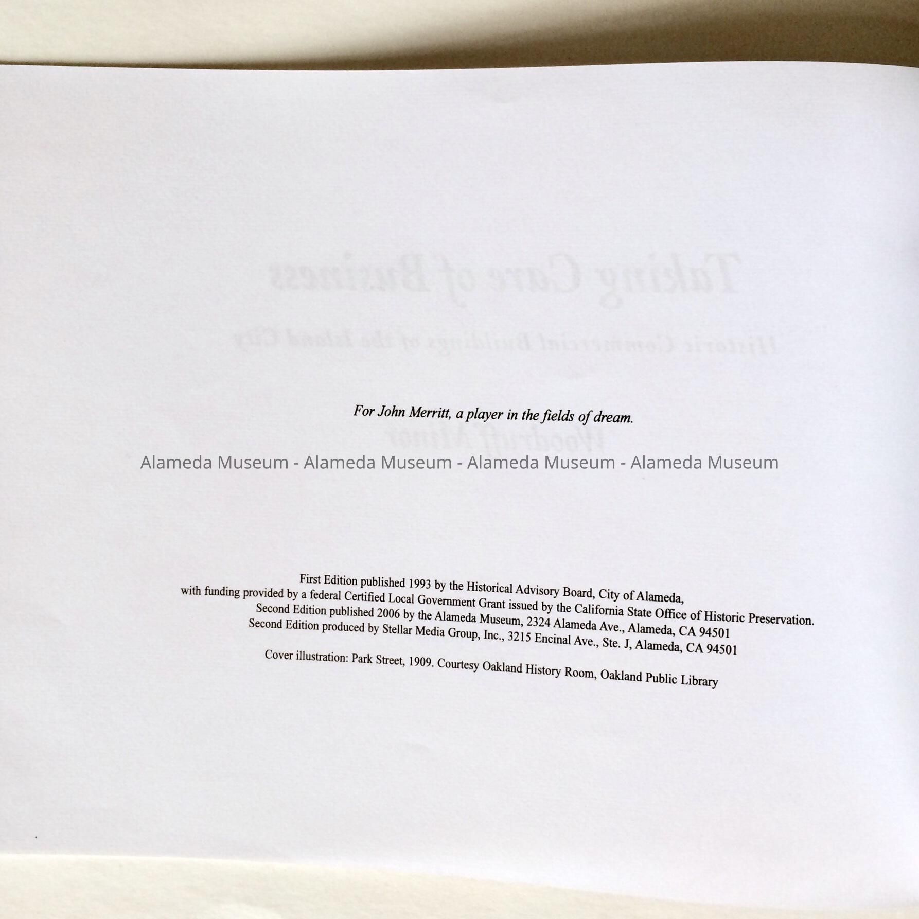 History of Object: Second edition of the book about Historic Commercial neighborhoods in Alameda, by Woodruff Minor, published by the Alameda Museum. In essence it is the same as the 1993 first edition, but it has a new 3-page section 'Rehabilitation'.