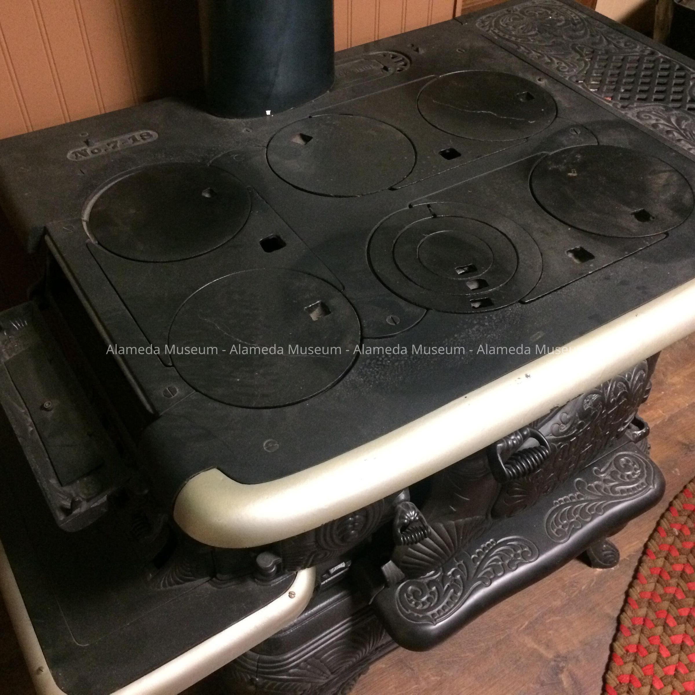 History of Object: Taunton Iron Works, Taunton, Mass., 'Quaker Gem 7' Cast iron stove from a house, in the last third of 2200 Encinal block. Donor does not recall the exact address, but it was a late colonial revival, one story, high basement, probably built between 1910 to early 1920s. Donor had permission to salvage from the city, as it was slated for demolition to make place for the new High School in the 1970s.
