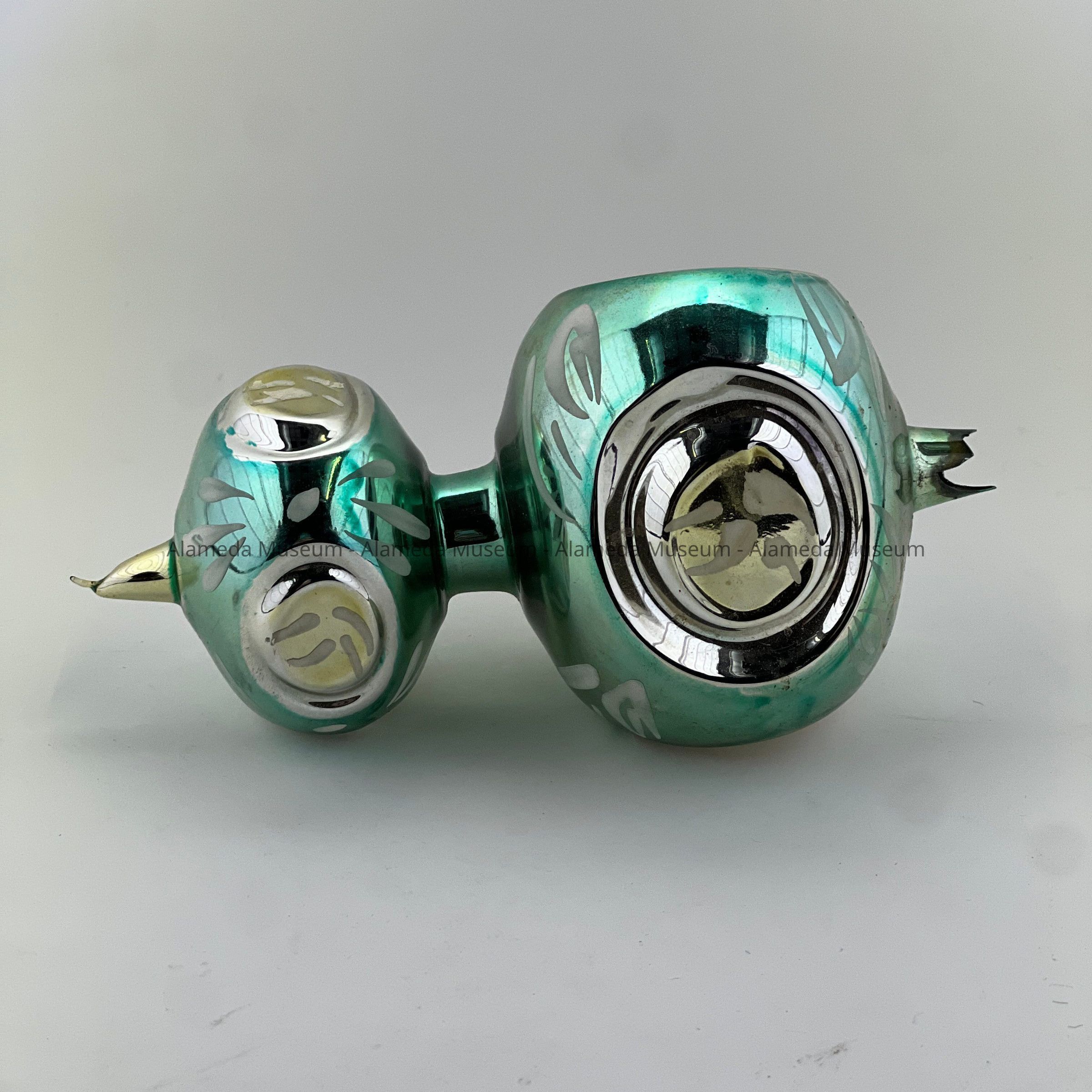Teal, White, and Silver 2 Tier Box Glass Christmas Ornament, c. 1980sEntry/Object ID