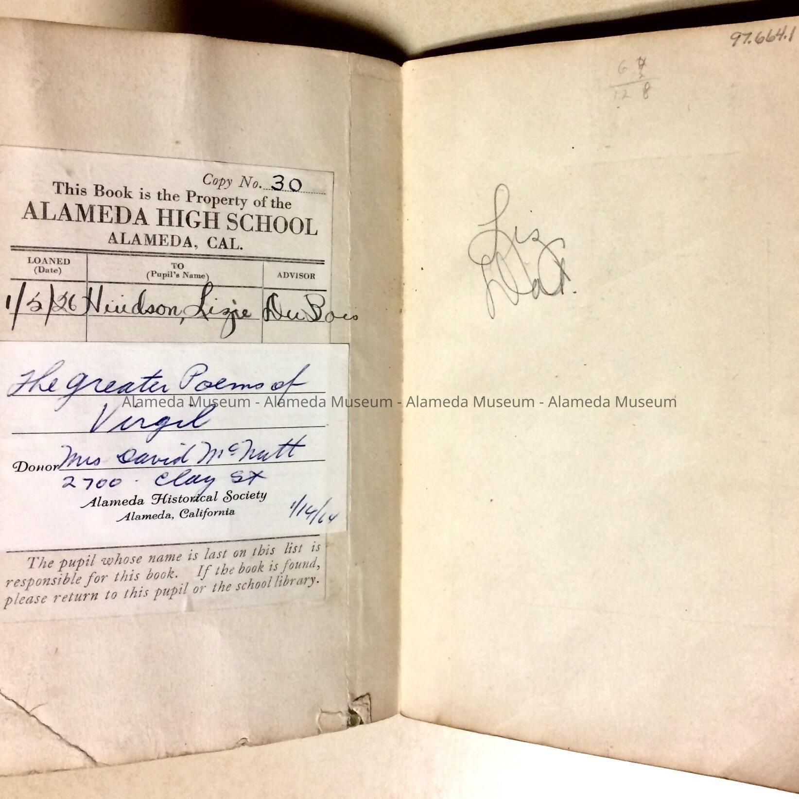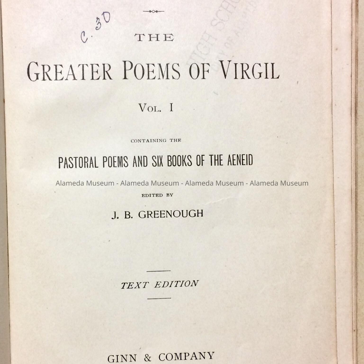 Textbook 'Virgil' published by Ginn & Co. from Alameda High School, c. 1926Entry/Object ID
