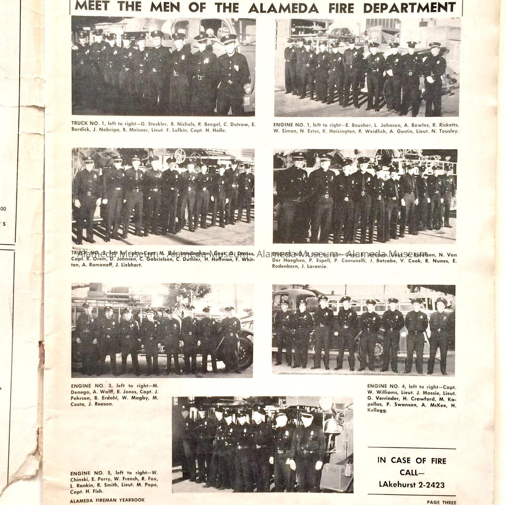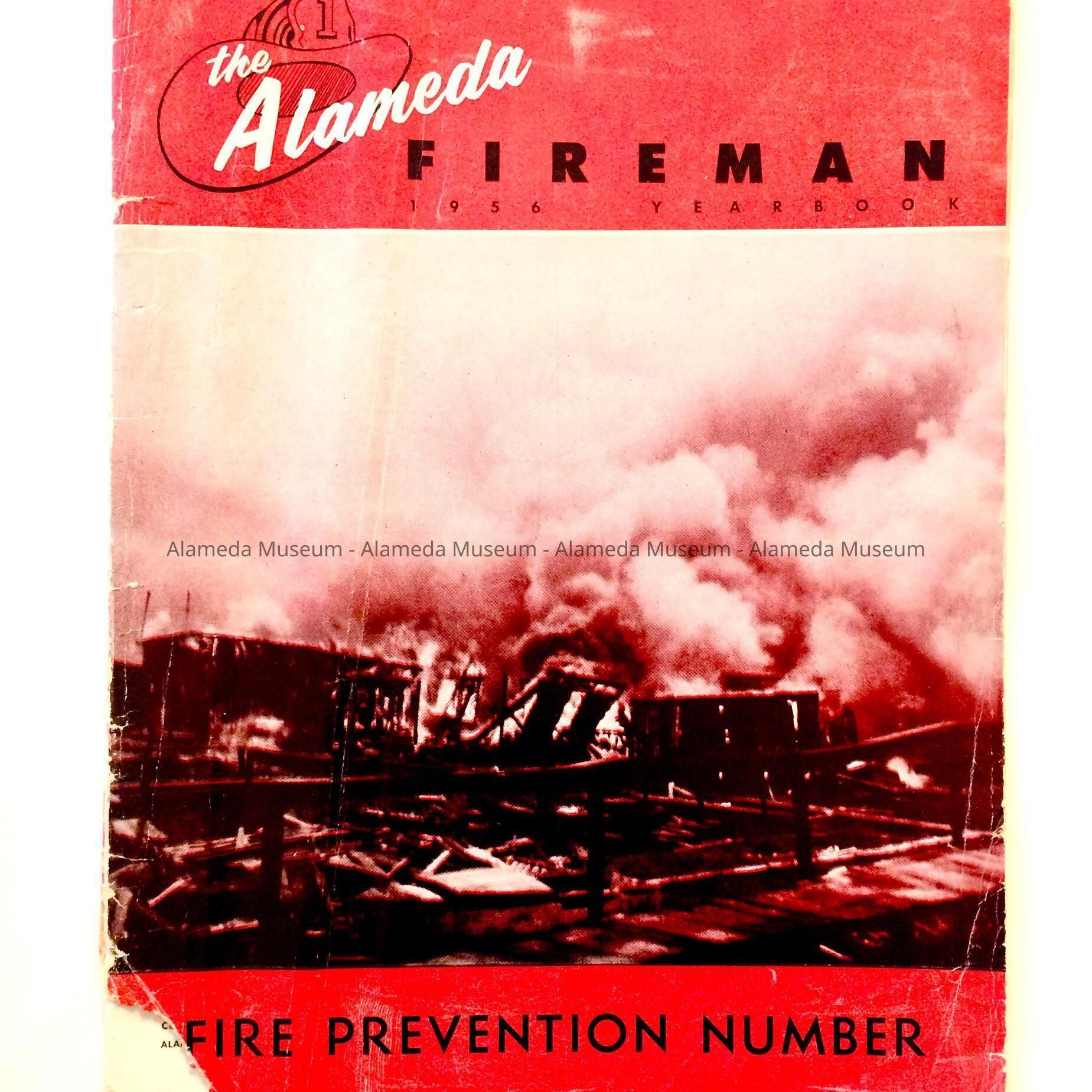 History of Object: Publication entitled "The Alameda Fireman" for 1956. Included are articles on fire safety, portraits of Fire Department officials, ads for local businesses.