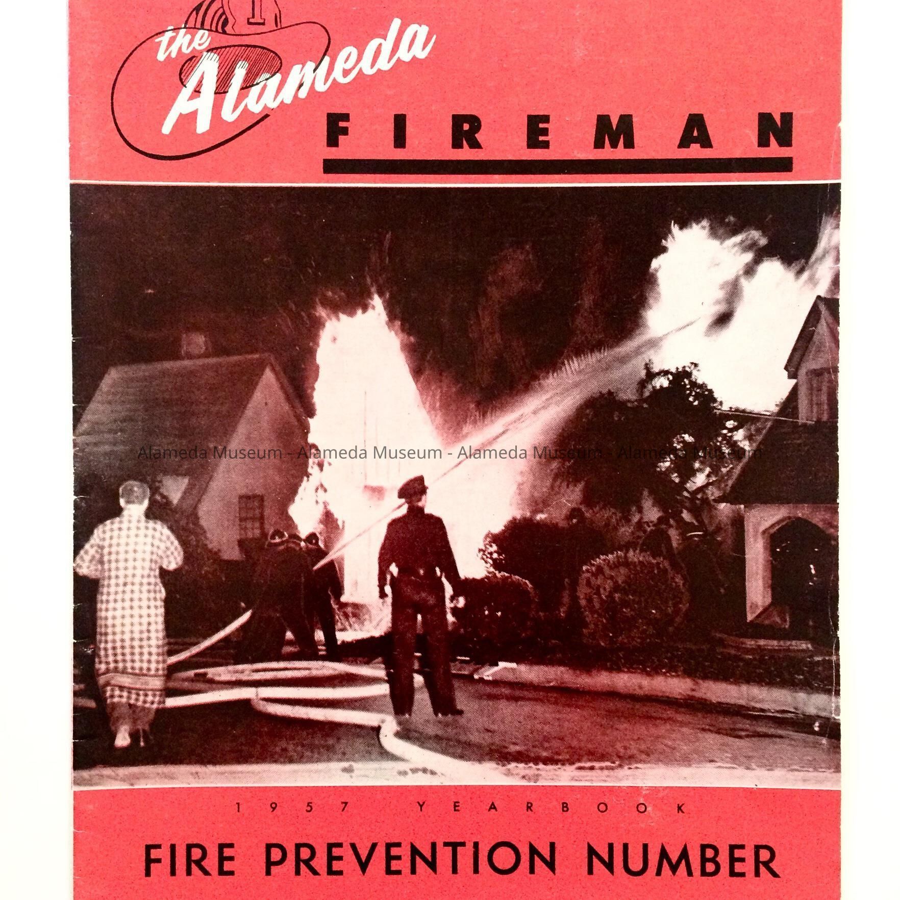 History: Magazine containing articles on fire prevention in Alameda and includes portraits of the Fire Chief and his assistants. The publication also includes ads for local businesses of the period 1957. Object, numbered 70, given to the Alameda Historical Museum prior to 1971 and never catalogued.