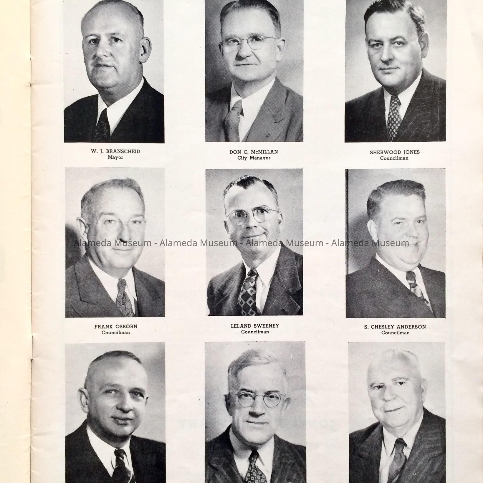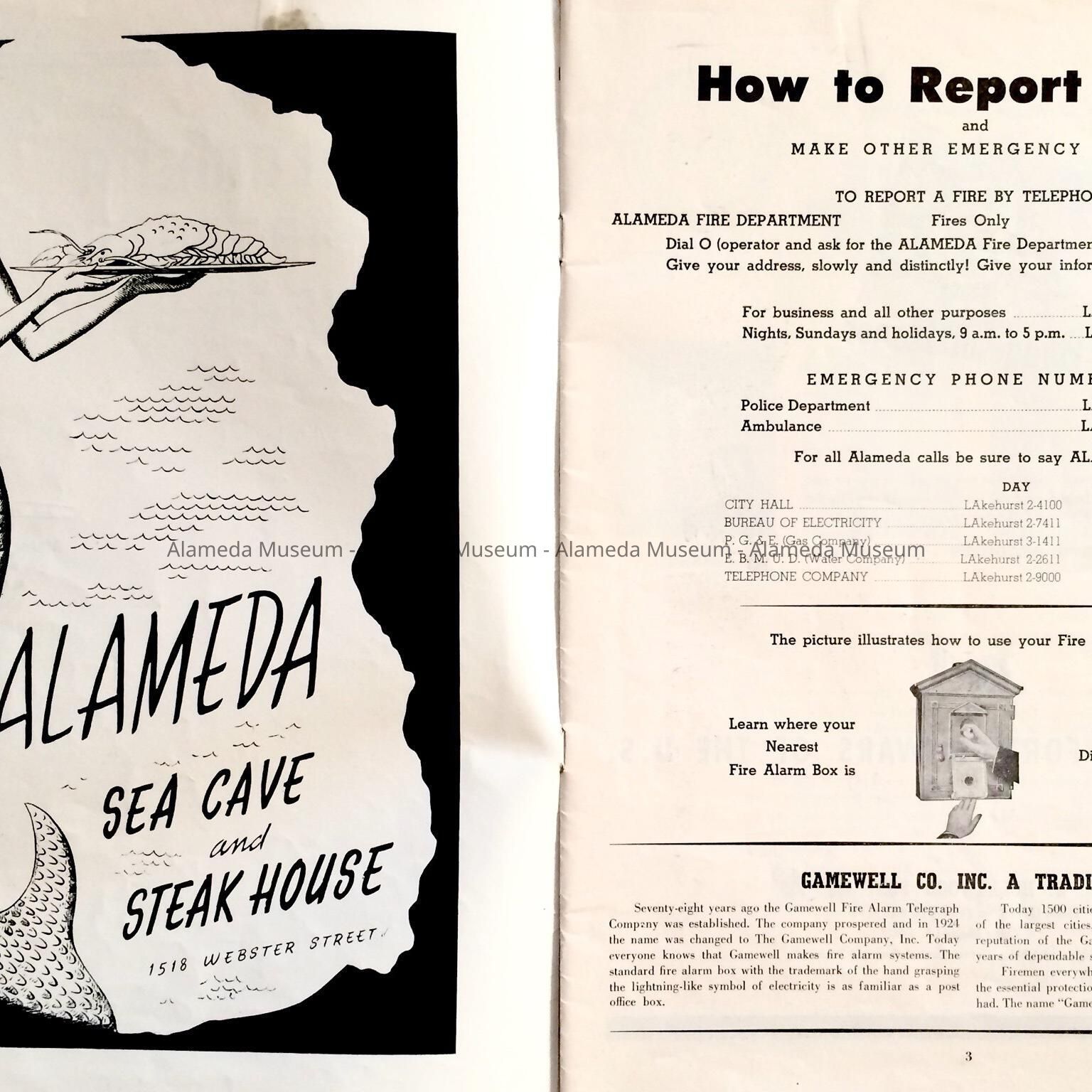 History: Publication entitled "The Alameda Firemen's Yearbook for 1947" and published by the Alameda Firemen's Fund of Alameda. This issue includes portraits of City Officials, Fire Department Officers and personnel. On Page 23, some historical information of Alameda and on page 25 is a listing of all the members of the Fire Companies for 1896. Also included are photographs of various fire houses, fire trucks, etc. In the back of the publication are ads of local businesses. Object donated to the Alameda Historical Museum, numbered 67, prior to 1971 and never catalogued. formerly owned by the Alameda Library.