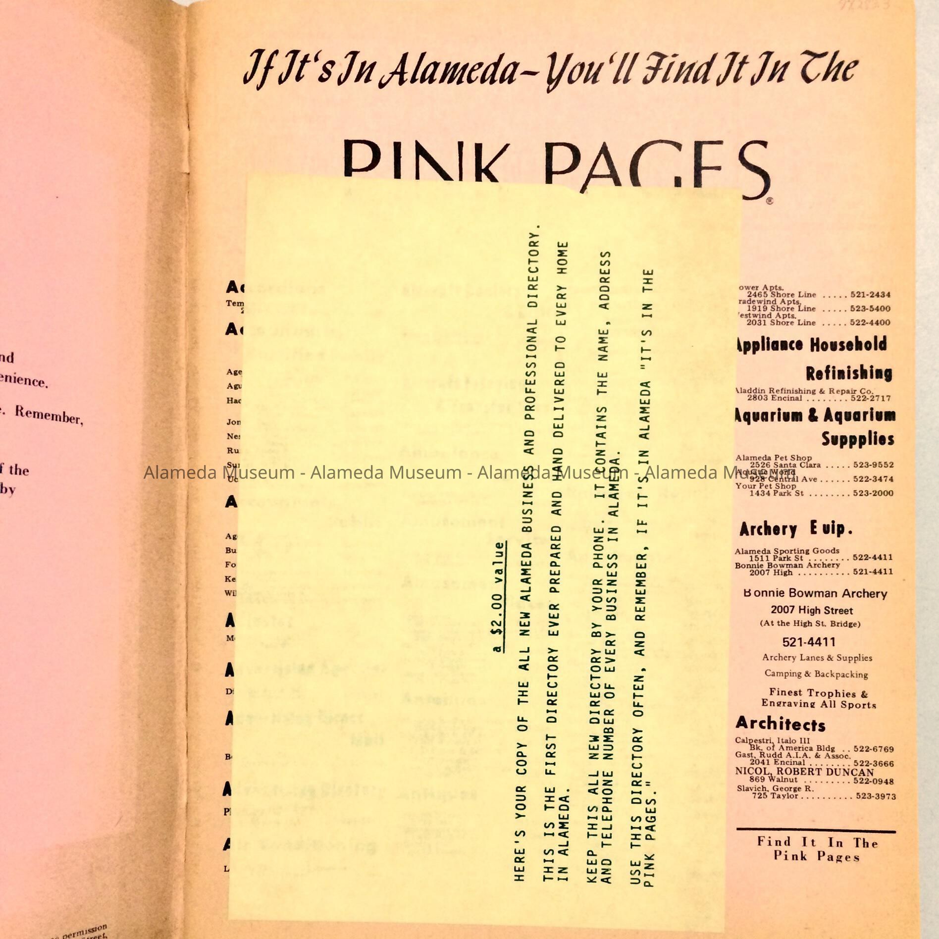 'The Alameda Pink Pages' directory, 1970Entry/Object ID