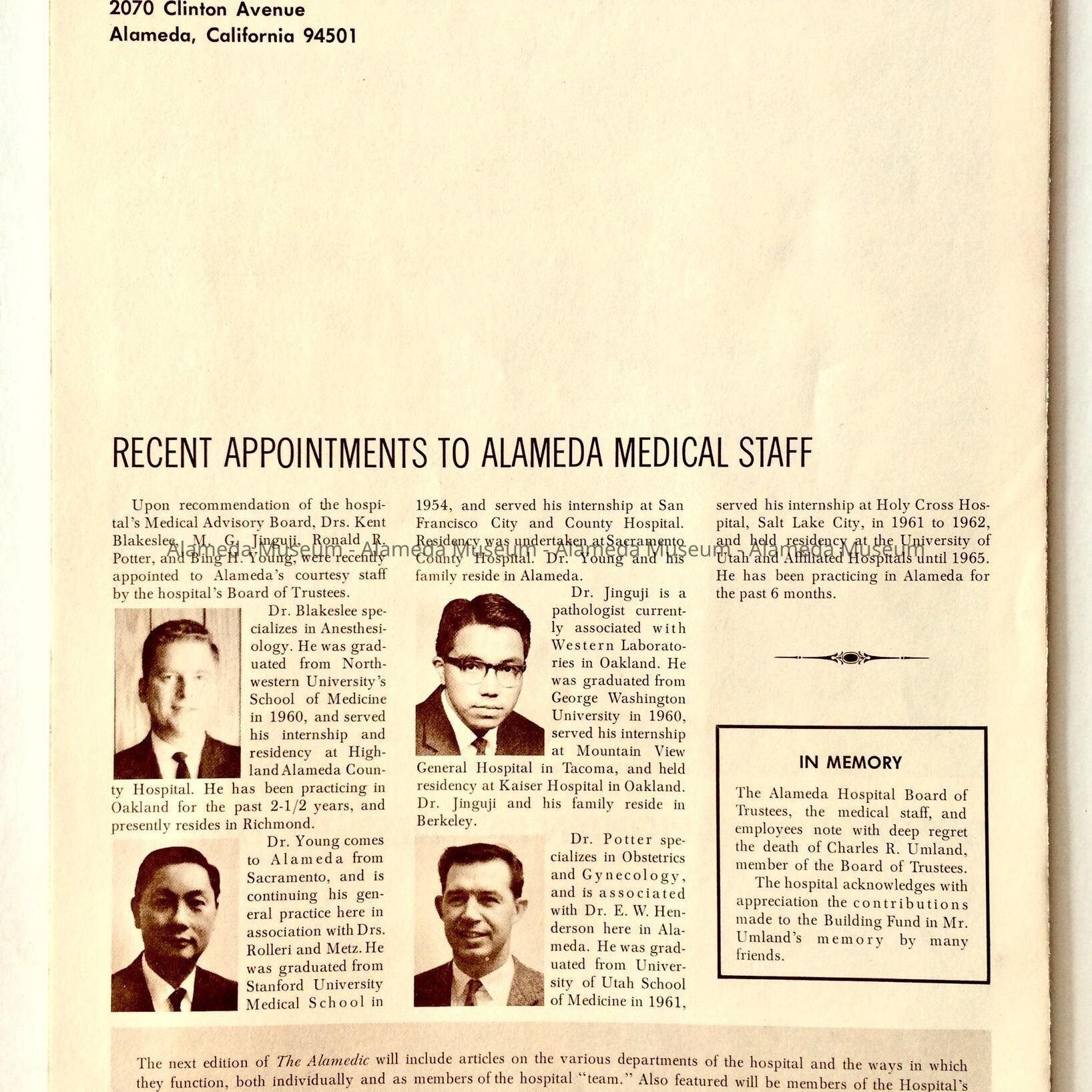 'The Alamedic', Bulletin of the Alameda Hospital, 1966Entry/Object ID