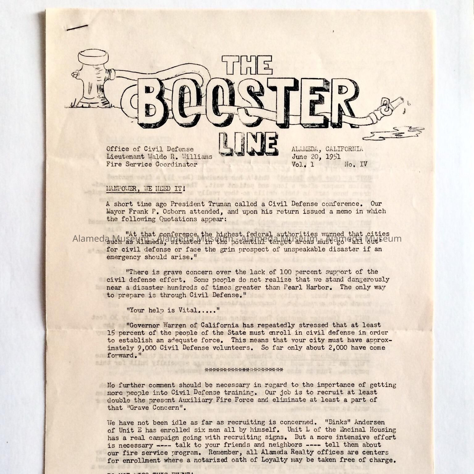 'The Booster Line' newsletter of the Civil Defense, 1951Entry/Object ID