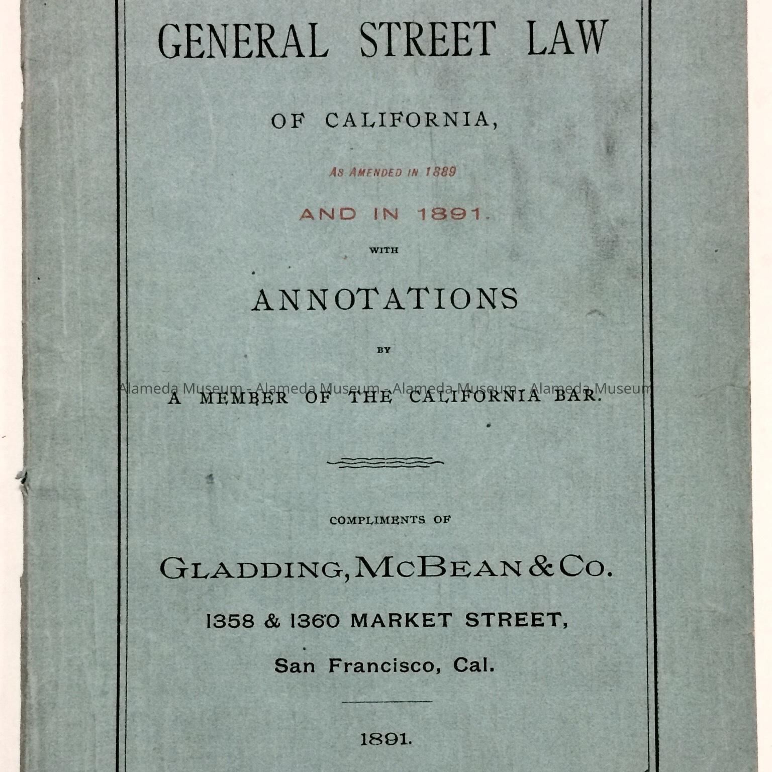 'The General Street Law of California', 1891Entry/Object ID