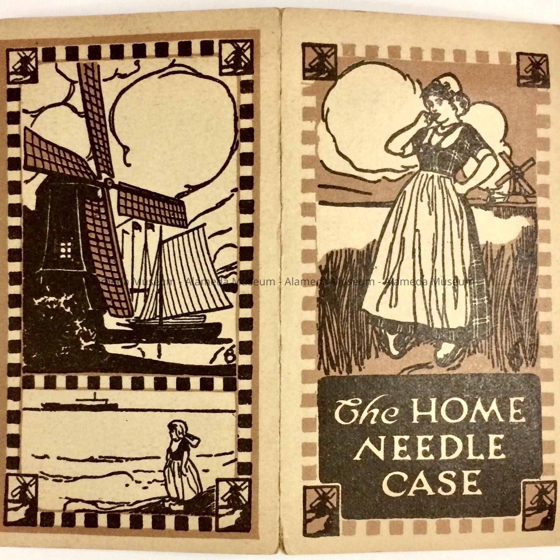 Description: Needle booklet or case of heavy stock paper with lithographic cover design of Dutch girl and caption "The Home Needle Case". Design in two shades of brown.