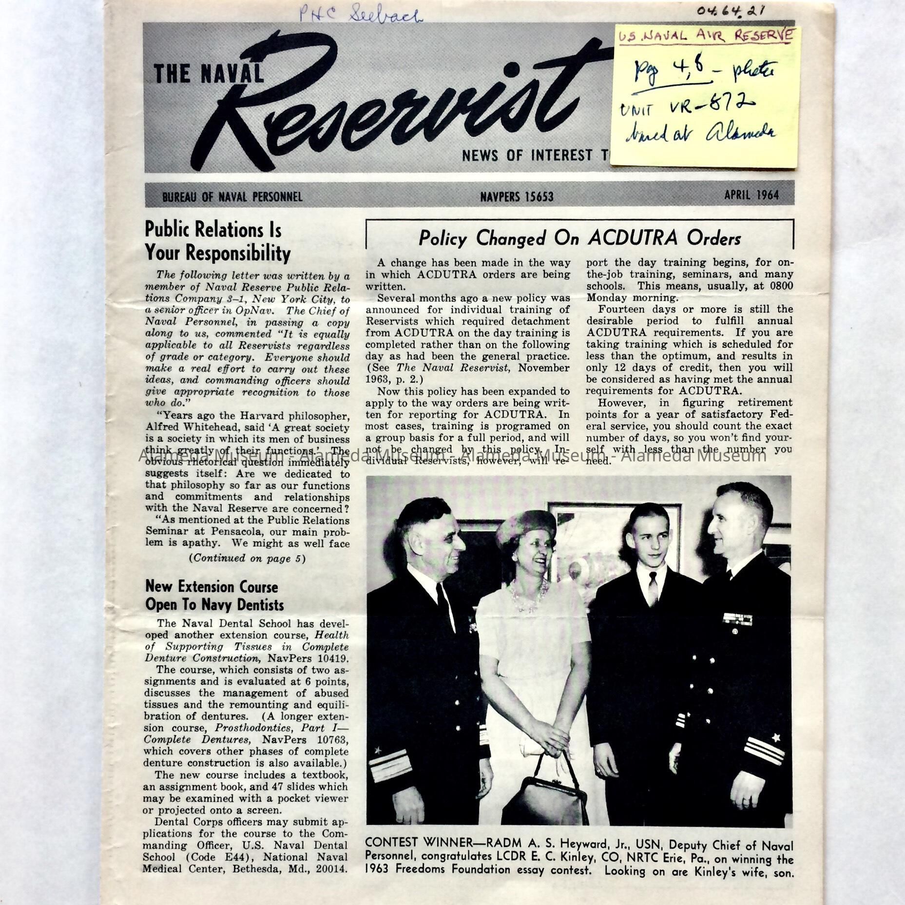 The Naval Reservist magazine, April 1964Entry/Object ID