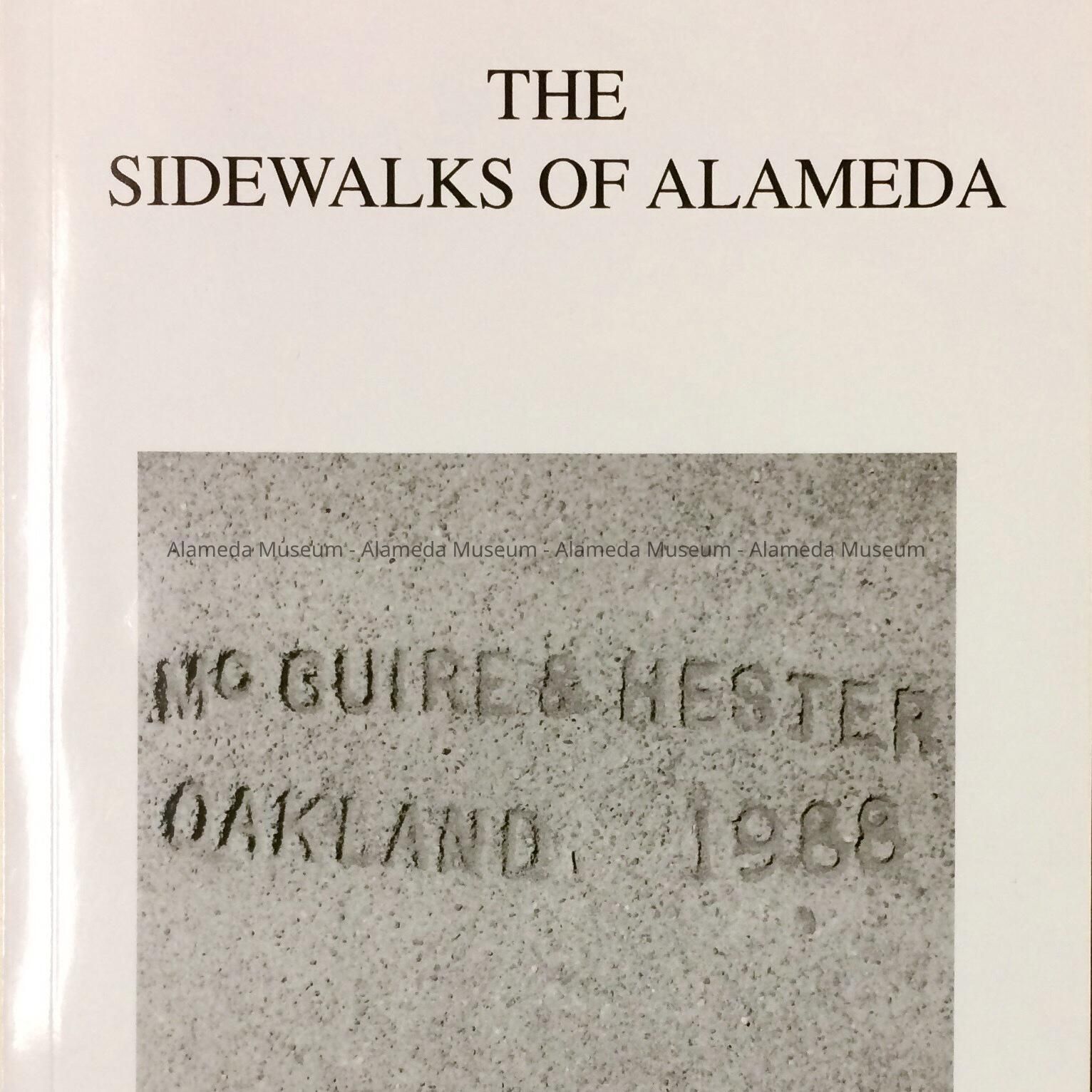 A SOFT-COVER BOOK, WITH ILLUSTRATED COVER DEPICTING CEMENT IDENTIFICATIONS AND BOLD-PRINTED CAPTION, "THE SIDEWALKS OF ALAMEDA," IN BLACK-COLORED TYPE ON A WHITE-COLORED BACKGROUND. BOOK WAS PUBLISHED BY TANRO CO., OAKLAND (PUBLISHER).