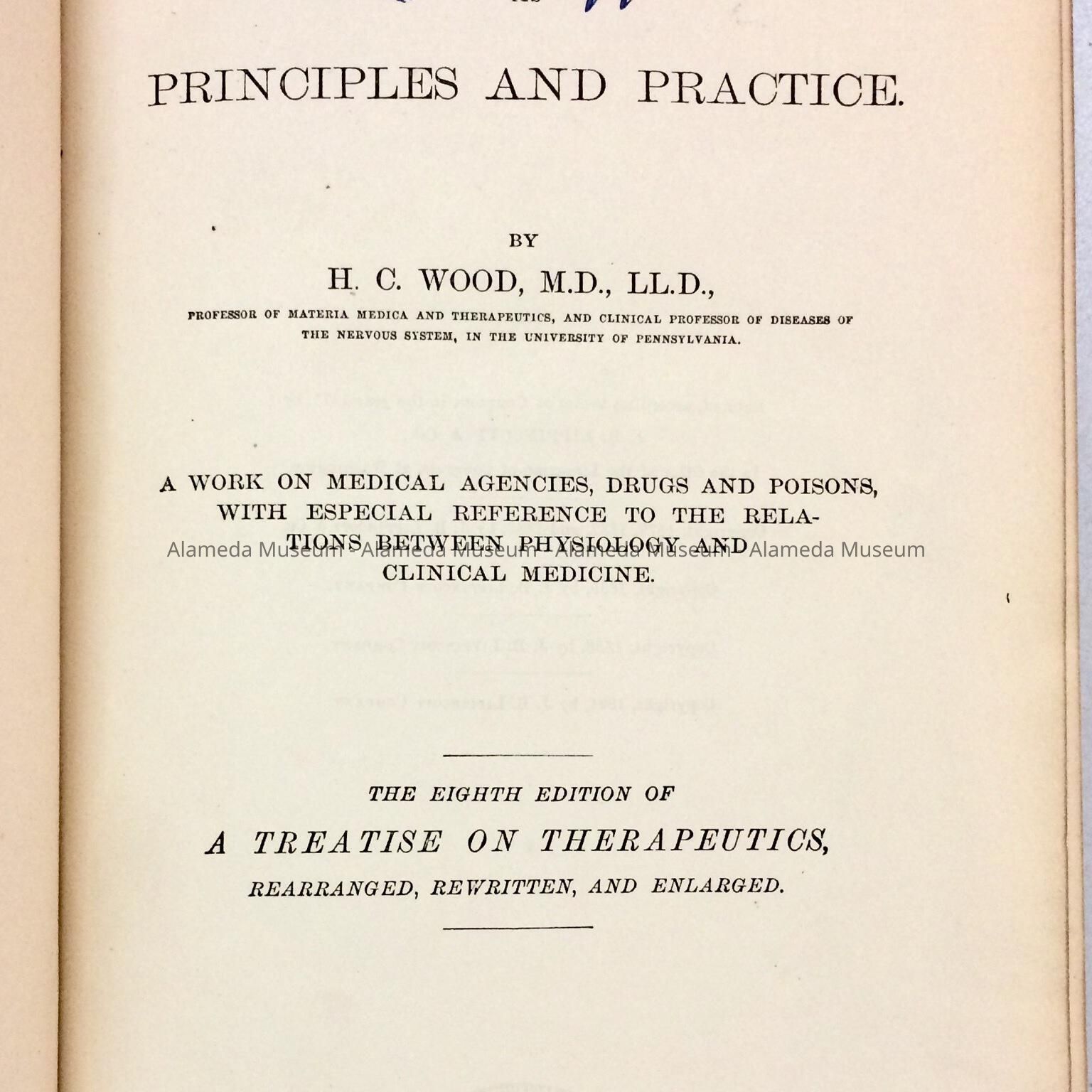 'Therapeutics, Its Principles and Practice', by H. C. Wood, 1891Entry/Object ID