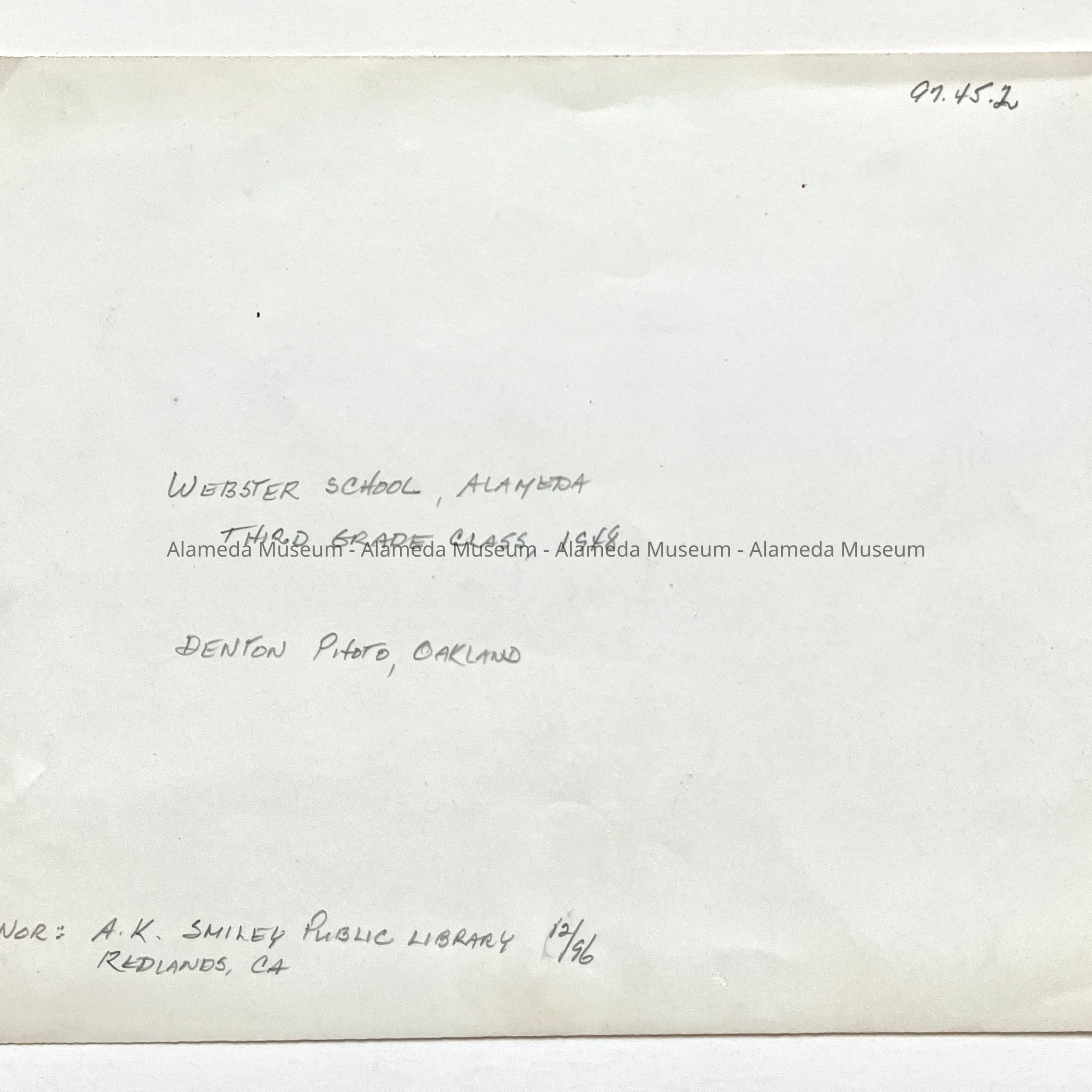 History of Object: Third Grade class picture, Webster School, Alameda, 1948.