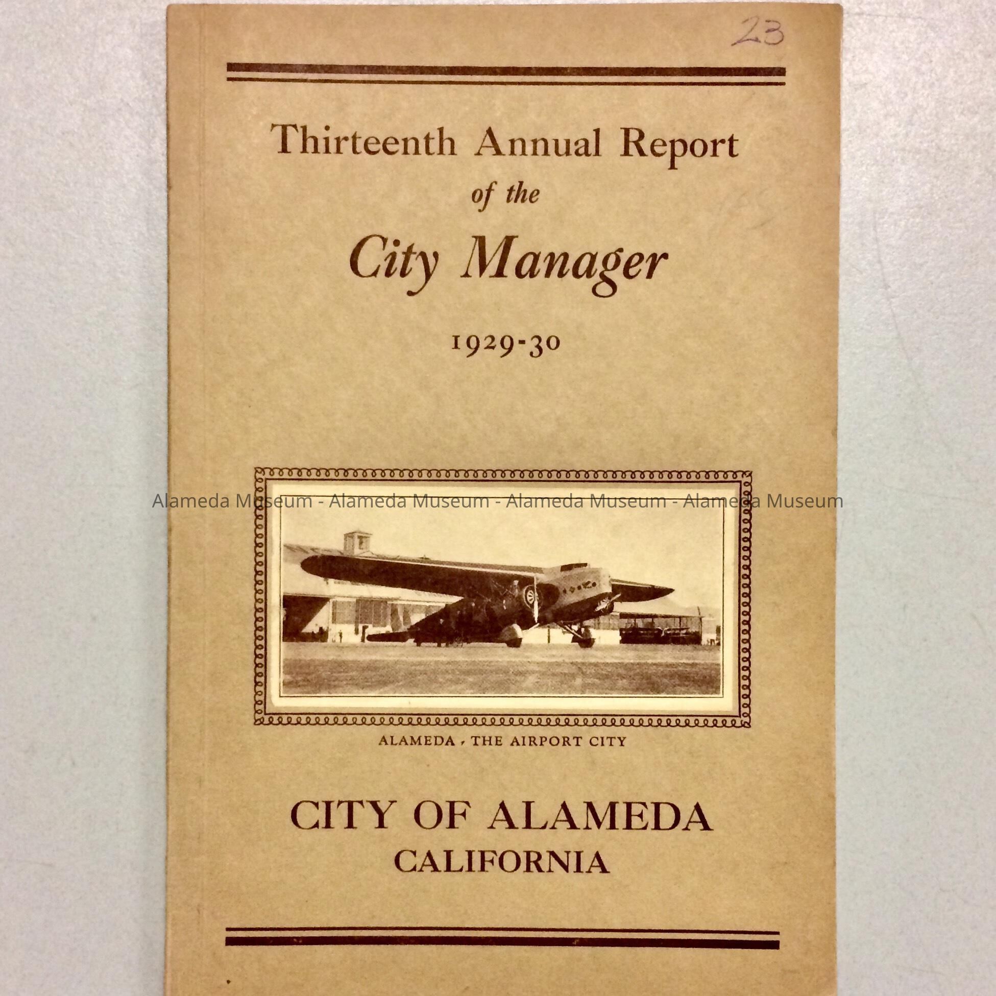 'Thirteenth Annual Report of the City Manager', 1929-1930Entry/Object ID