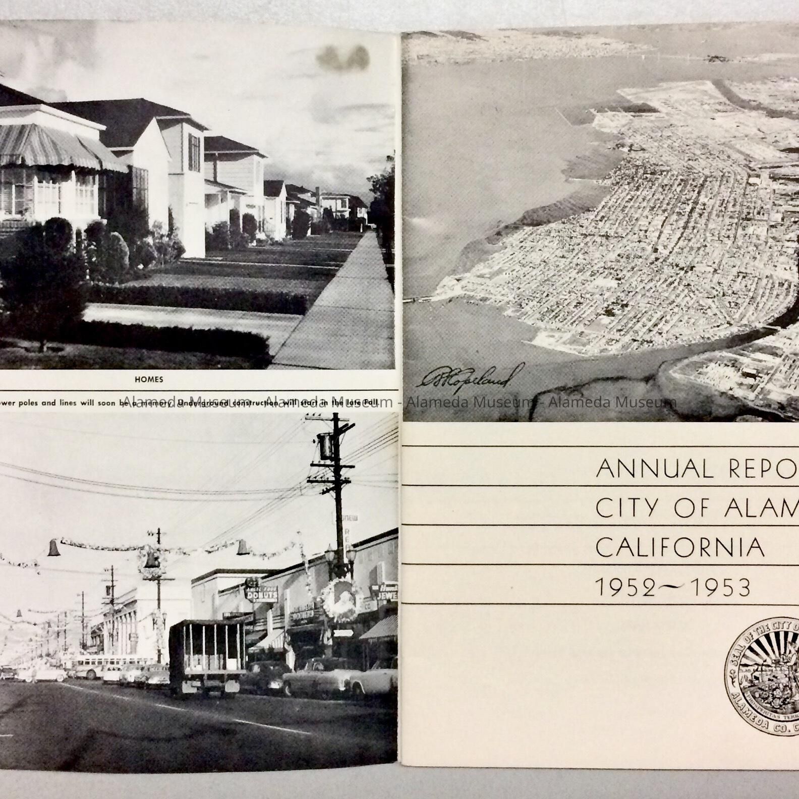 Annual report of the City of Alameda, 1952-53. The report has articles on the various City departments, a listing of \city officials, and has many illustrations of the community. Object given to Alameda Historical Society in 1971, numbered 37, and never catalogued.