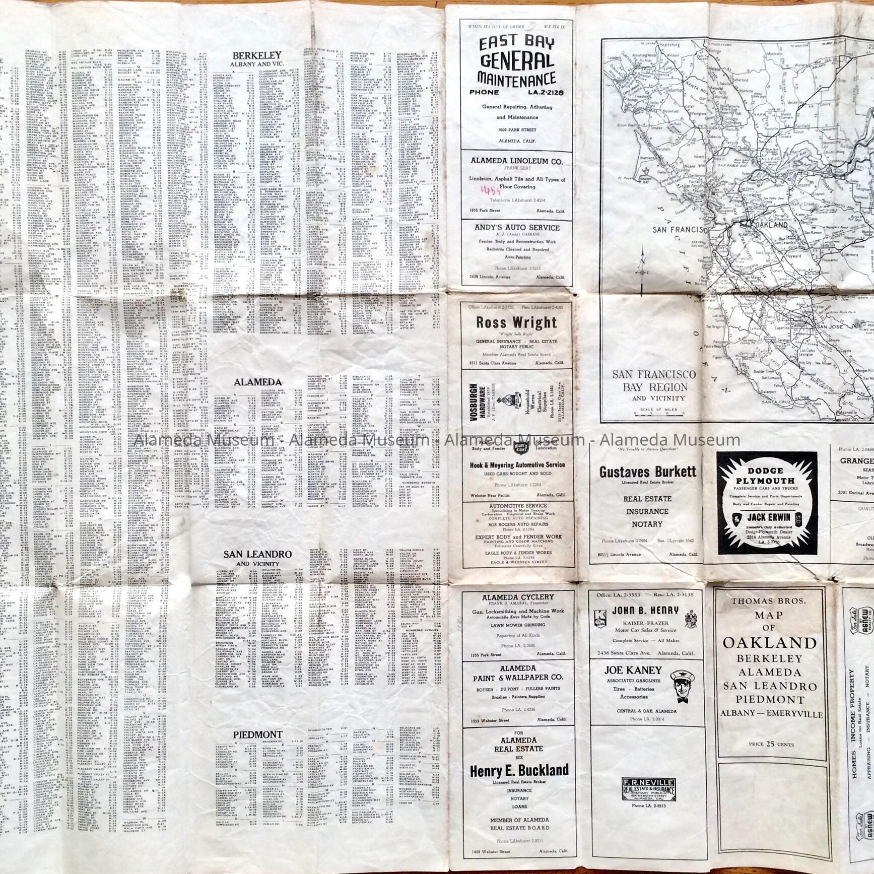 Thomas Brothers Map of Oakland, Berkeley, Etc., c. 1950sEntry/Object ID