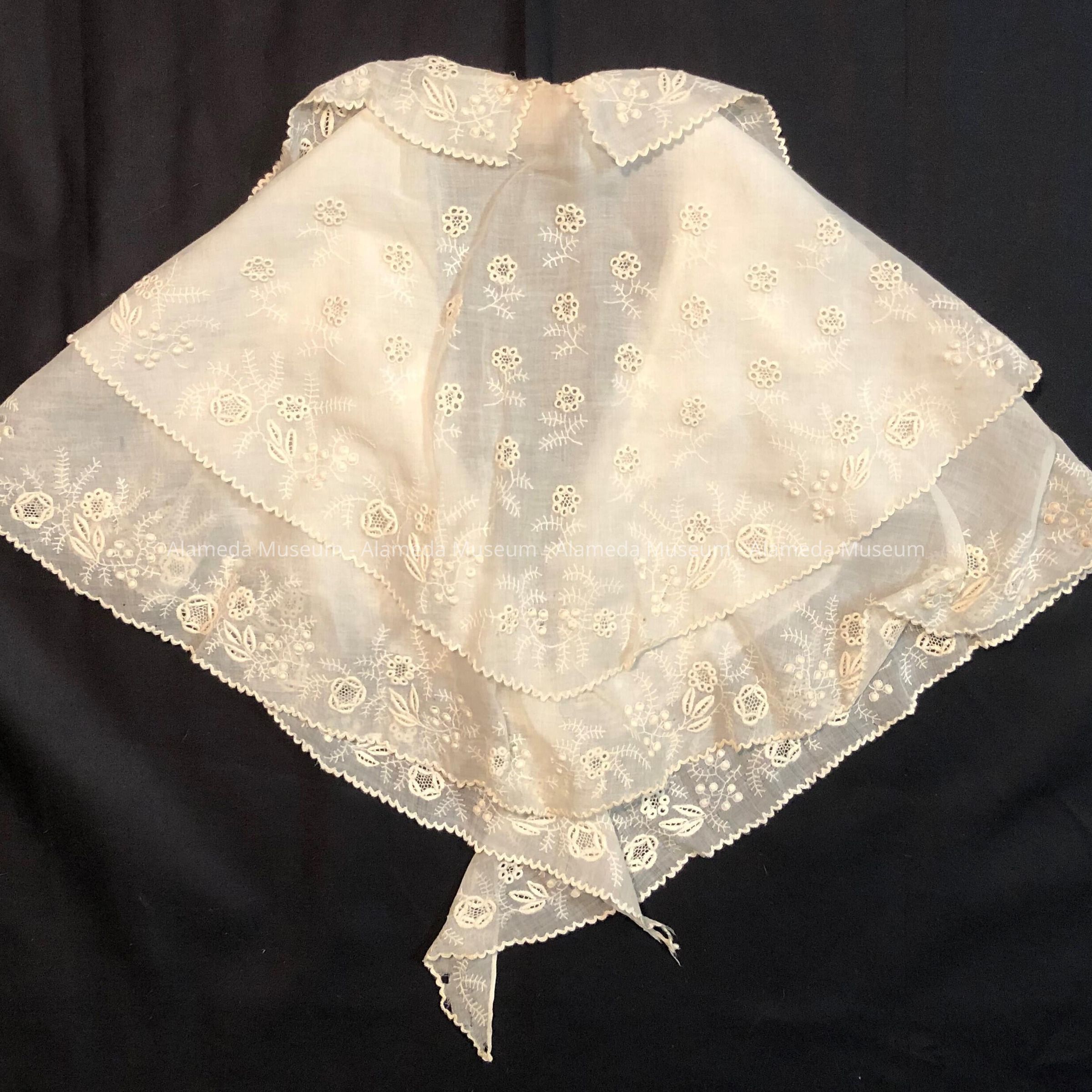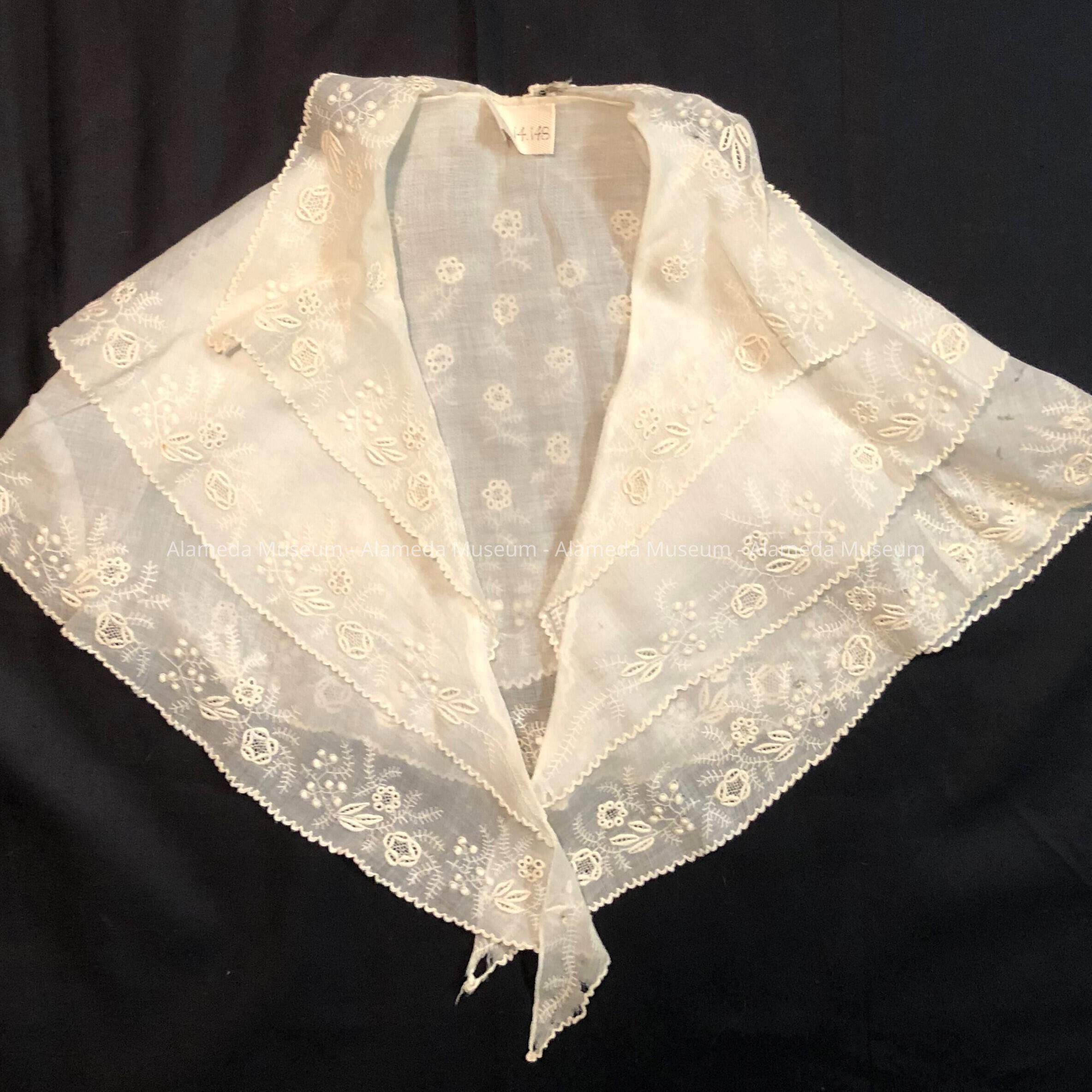 Collar worn by Mrs. Turner, who was the Mother of Olive Turner Toye, Grandmother of Adeline Toye Cox. Mrs. Turner lived with her daughter on Encinal Ave. She came across the plains by covered wagon to Calif.