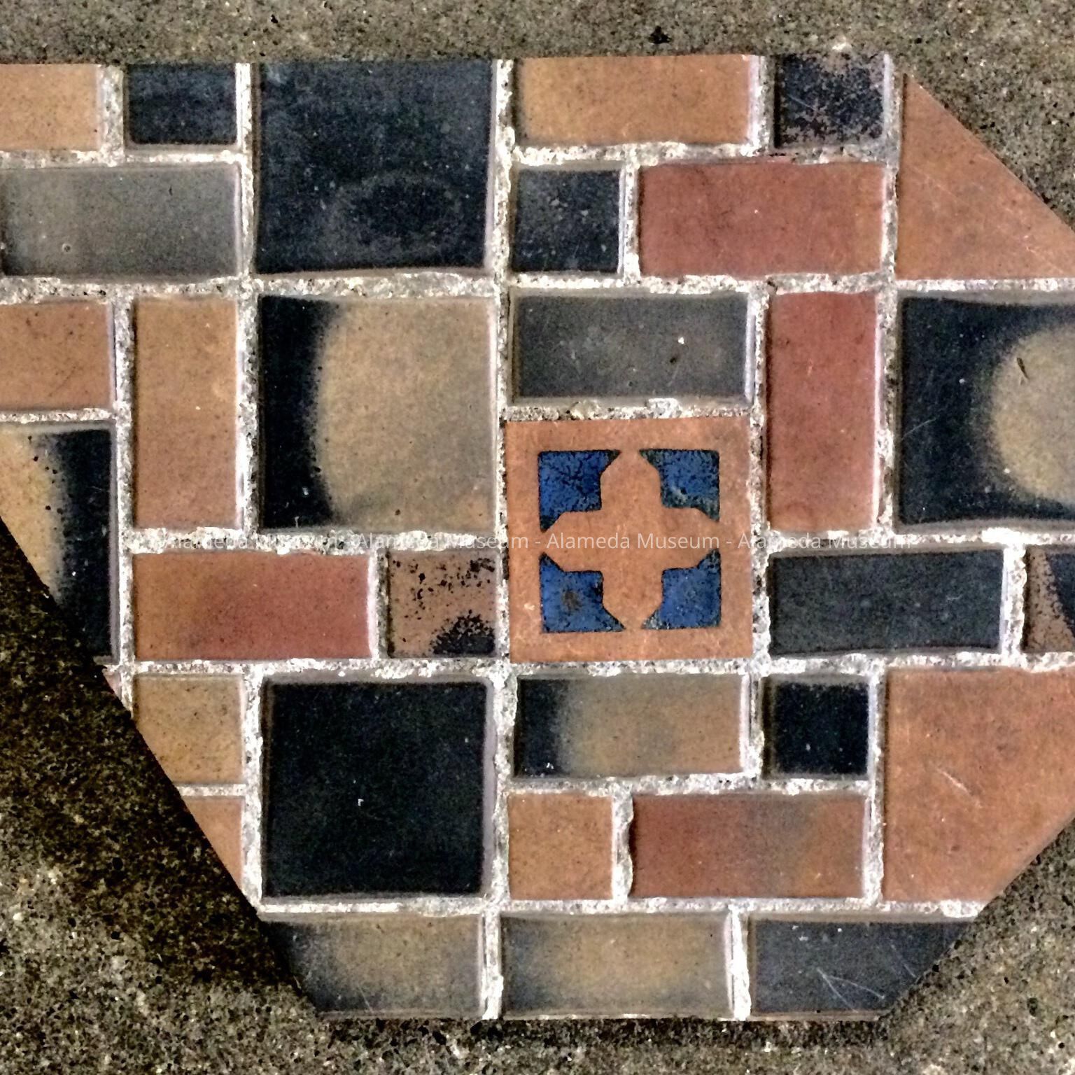 History of Object: A section of tile work removed by Riley Doty in 1979 while working on the Main entry to the Masonic Temple.