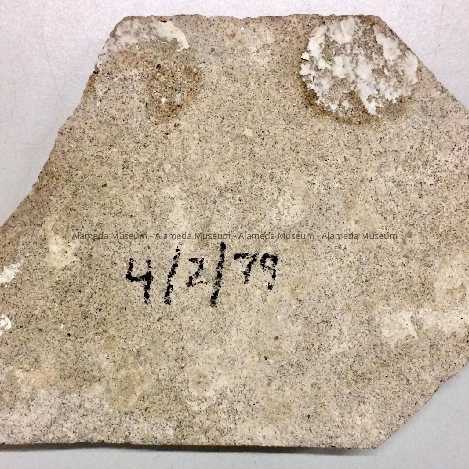 Description: An irregular shaped earth colored matte finish piece of tile mounted on its origma cement bedding.