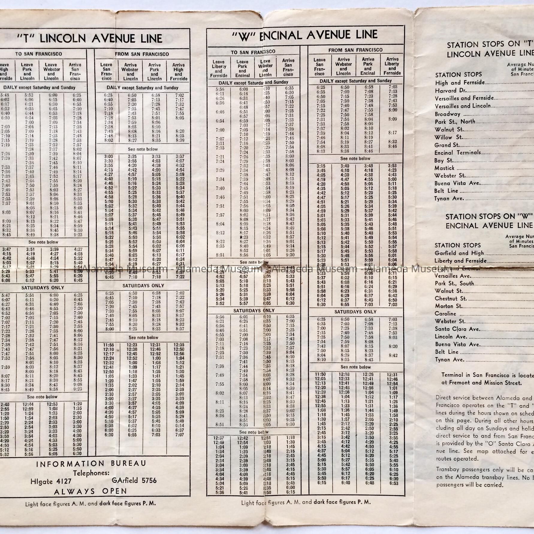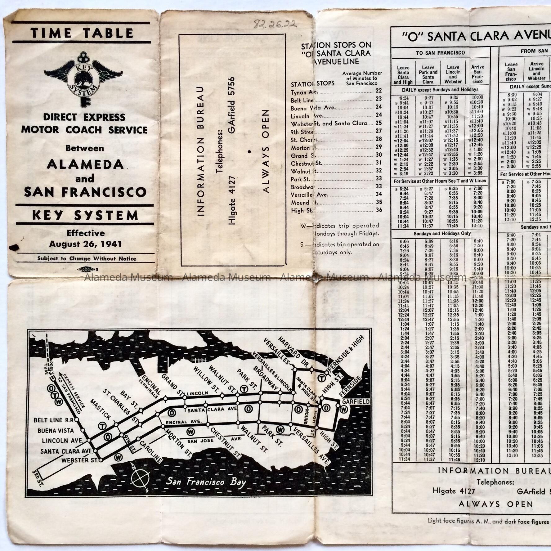 History of Object: Time table, Key System Bus Company, route and stops, City of Alameda, for 1941.