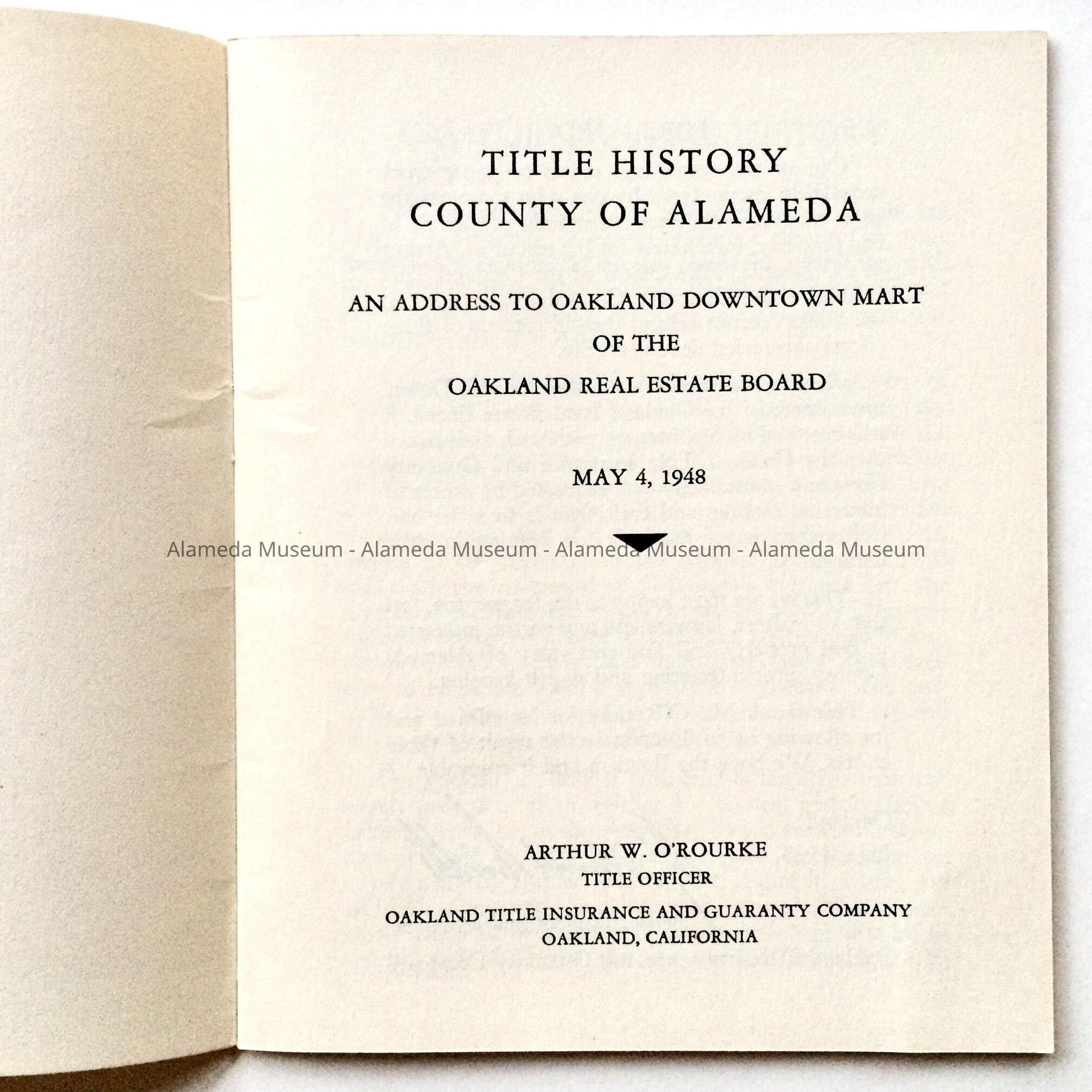 'Title History, County of Alameda' by Arthur W. O'Rourke, 1948Entry/Object ID