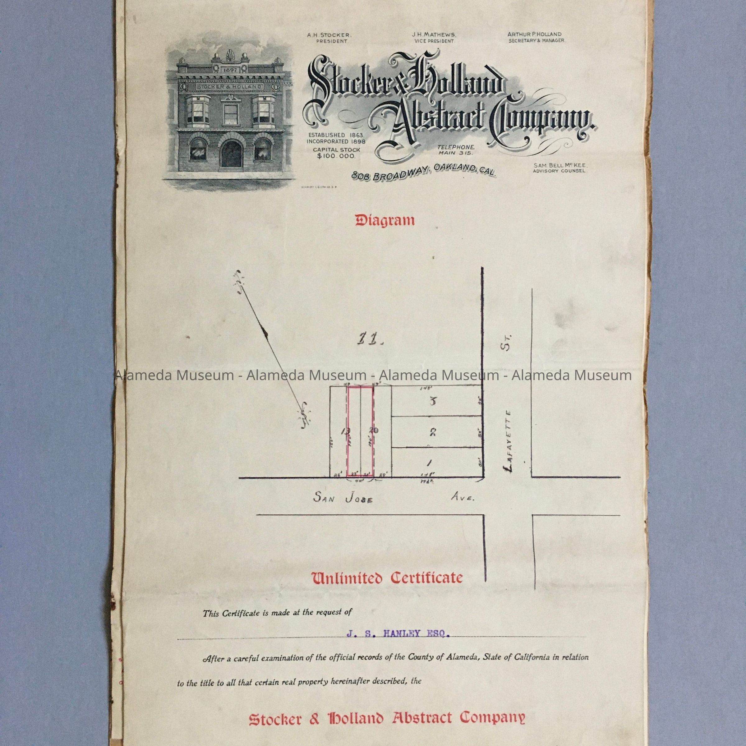 Title Search 1823 San Jose Avenue, 1904-1907Entry/Object ID