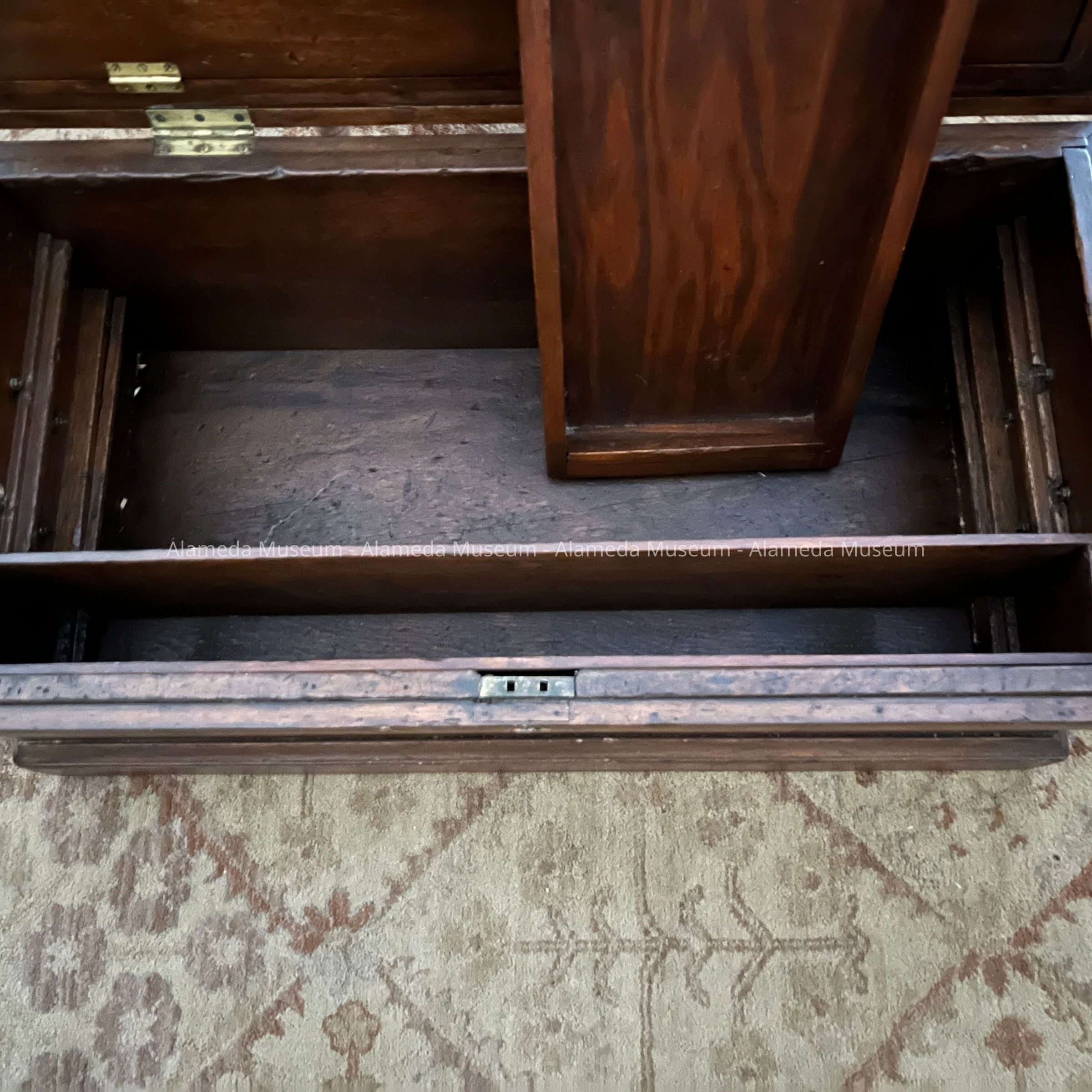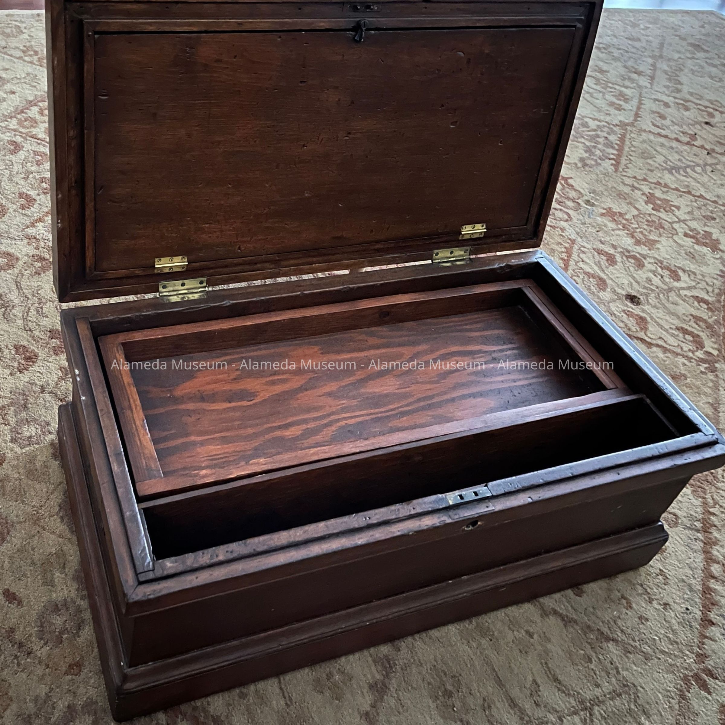 History of Object: Antique tool chest used by John Ucovich (1877-1938), grandfather of the donor, an immigrant carpenter from Montenegro. He moved to Alameda around 1925, and ran a trucking business in Oakland. By 1938 John (aged 61) lived with his wife, Myrtle May, at 775 Santa Clara. He died as the result of injuries sustained after being run over by a streetcar on March 28, 1938.