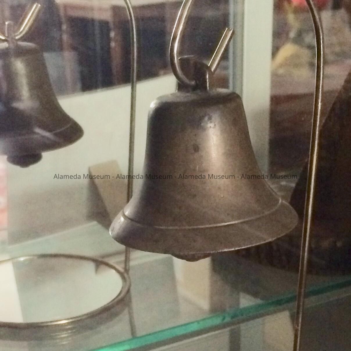 History of Object: This bronze bell was used on an old bus that was operated by Mr. Herbert Townsend in 1880. It was driven from Park Street Alameda to 23rd Avenue, Oakland. He rang the bell to attract patrons.