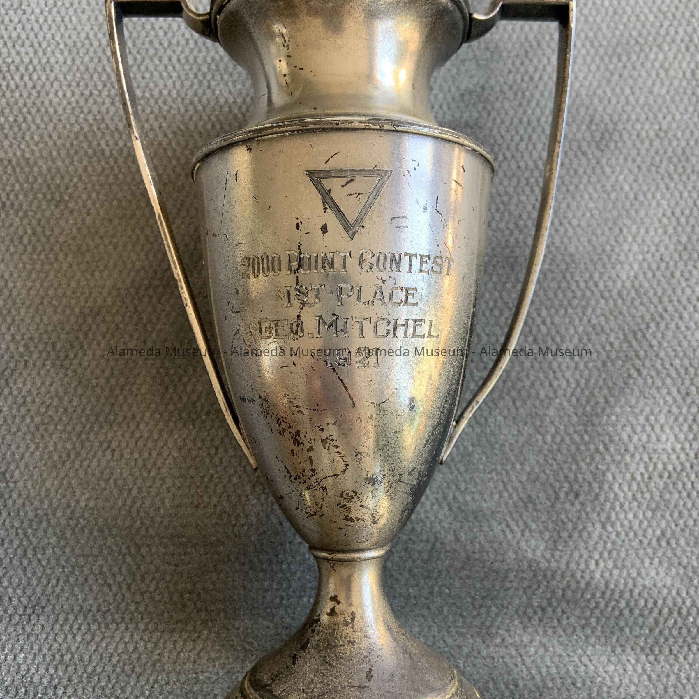 TROPHY AWARDED TO GEORGE MITCHELL, FIRST-PLACE WINNER IN THE 2,000-POINT CONTEST AND DATED 1921.