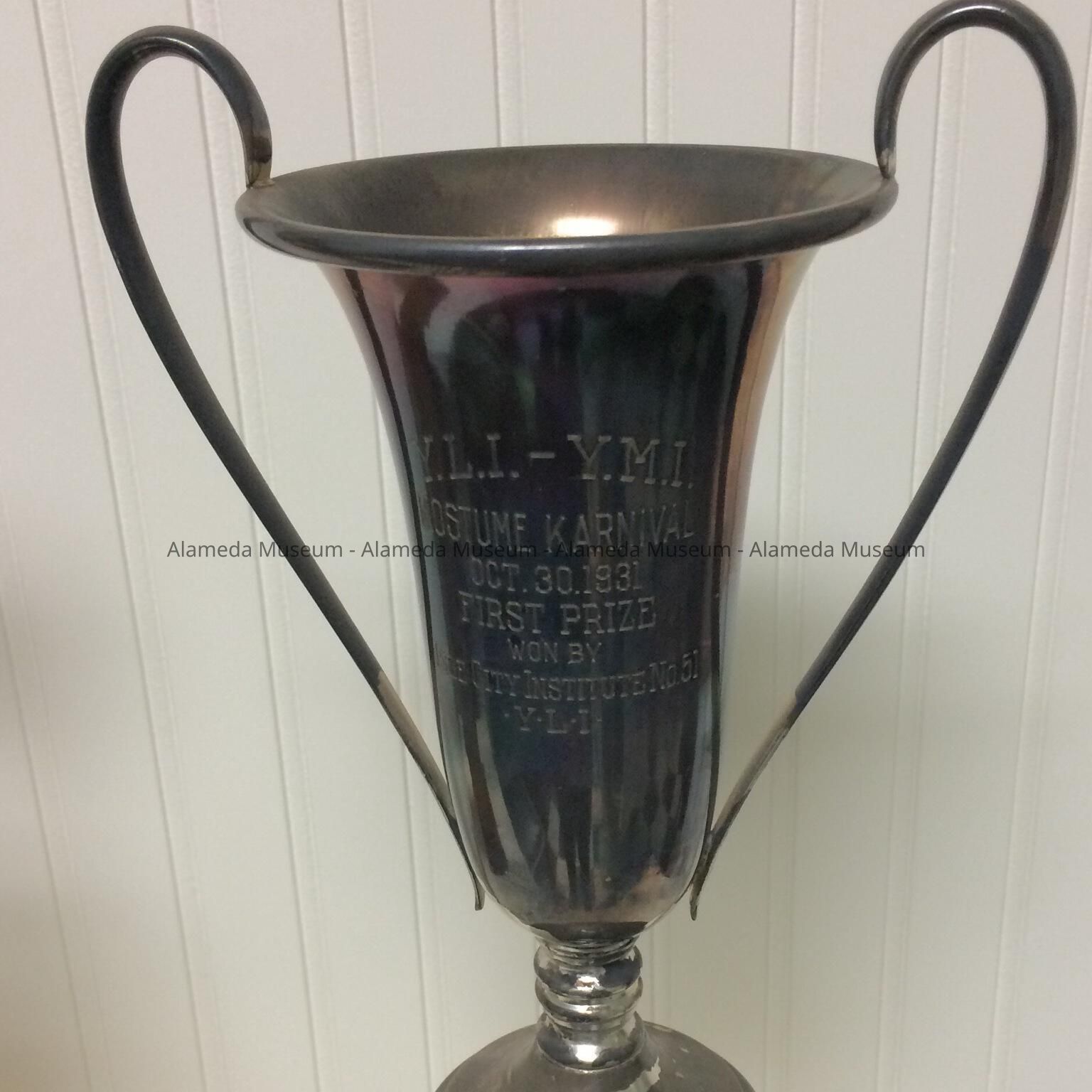 TROPHY WON BY THE YOUNG LADIES' INSTITUTE (YLI) - YOUNG MENS" INSTITUTE (YMI) COSTUME CARNIVAL, OCTOBER 30, 1931. FIRST PRIZE WAS WON BY THE YLI #51.