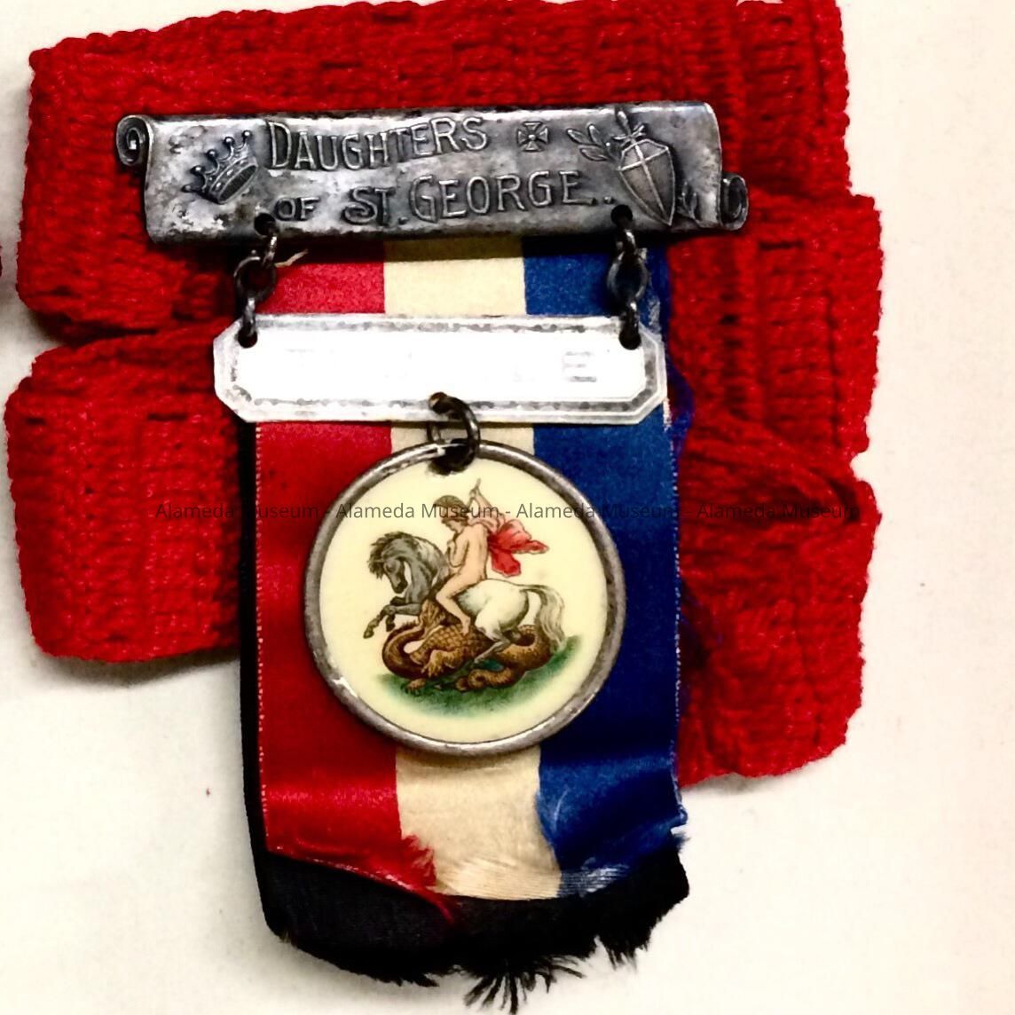 History of Object: Trustee badge "Daughters of St. George" (a fraternal order of ladies of English extraction). Alameda chapter (Golden Poppy Lodge) founded Dec. 14, 1922, disbanded 1976.