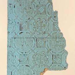 Description: Rectangular shaped wallpaper sample painted turquoise blue. Original