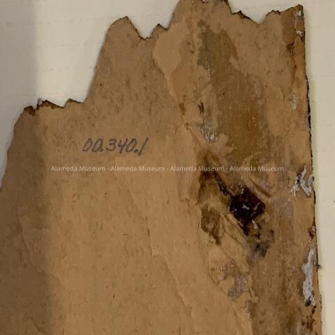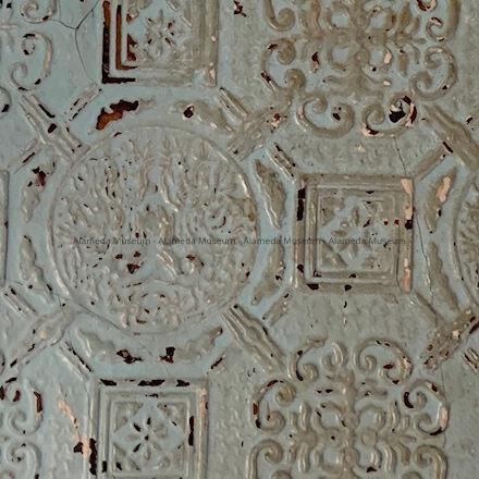 History of Object: Sample of lincrista walton wallpaper that served as a wainscotting to the staircase from the first floor to basement level, Alameda Free Library erected 1902-03.