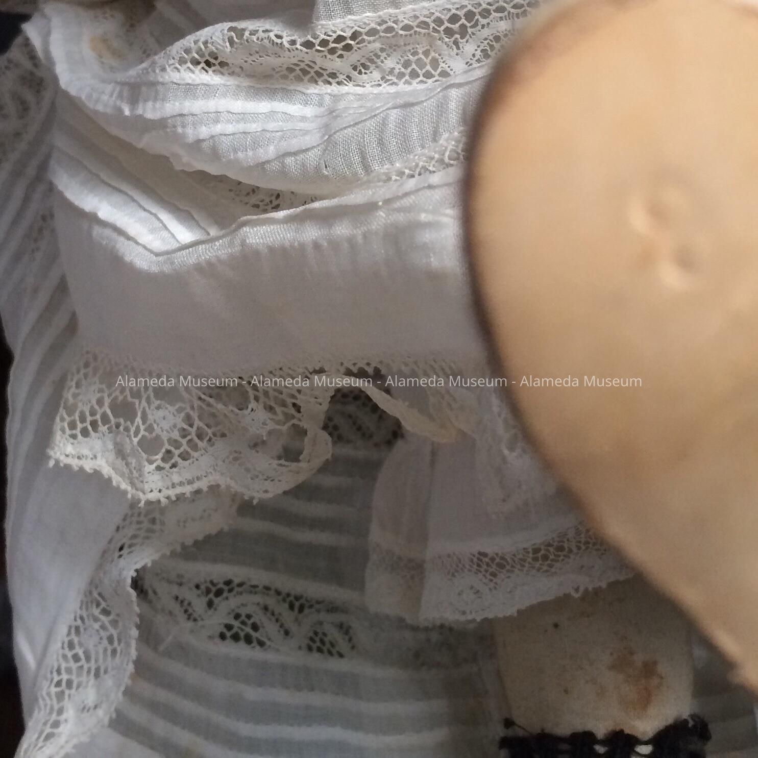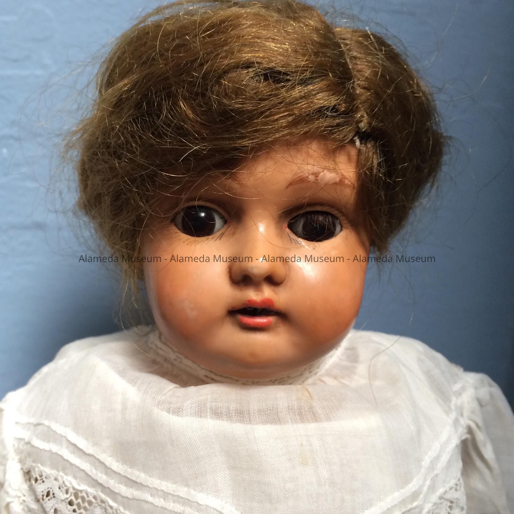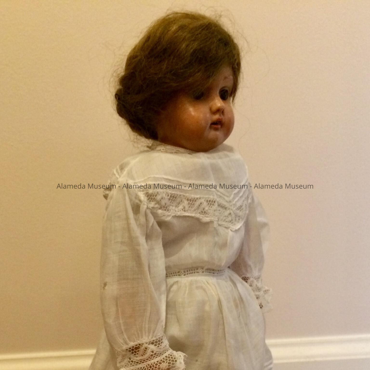History of Object: Childhood doll of Eleanor Clark, member of an old time Alameda family.