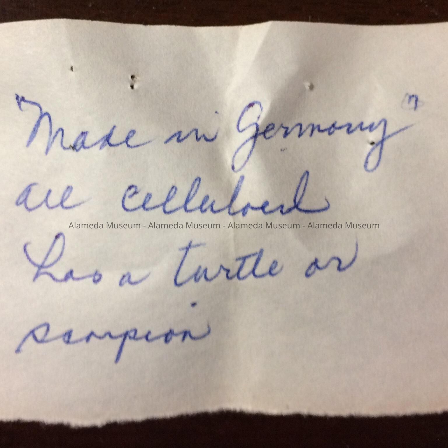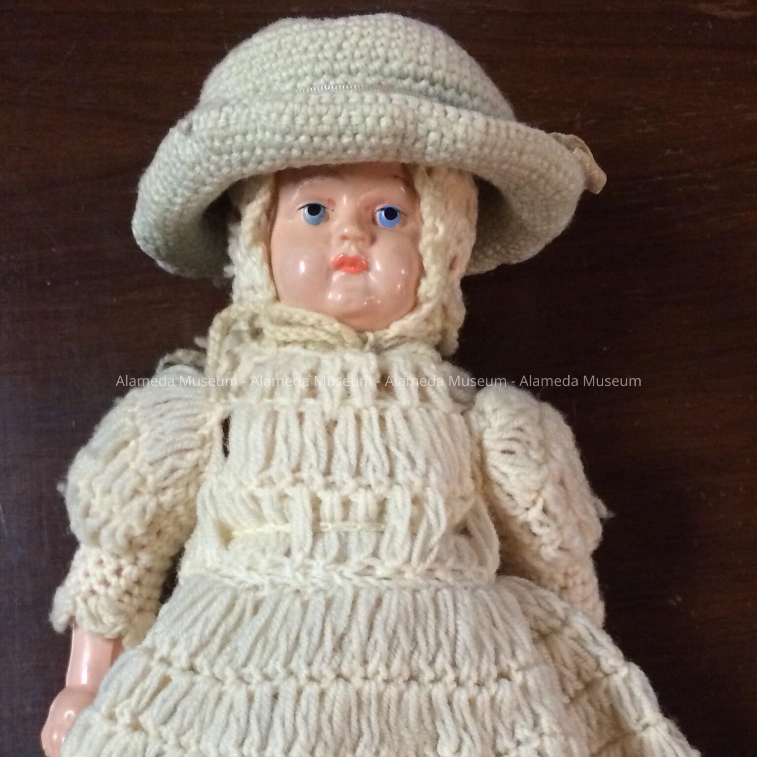 German celluloid doll which originally belonged to Eleanor Clark, member of an old time Alameda family.