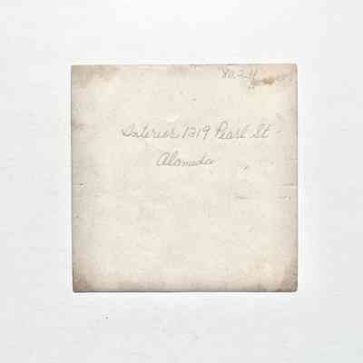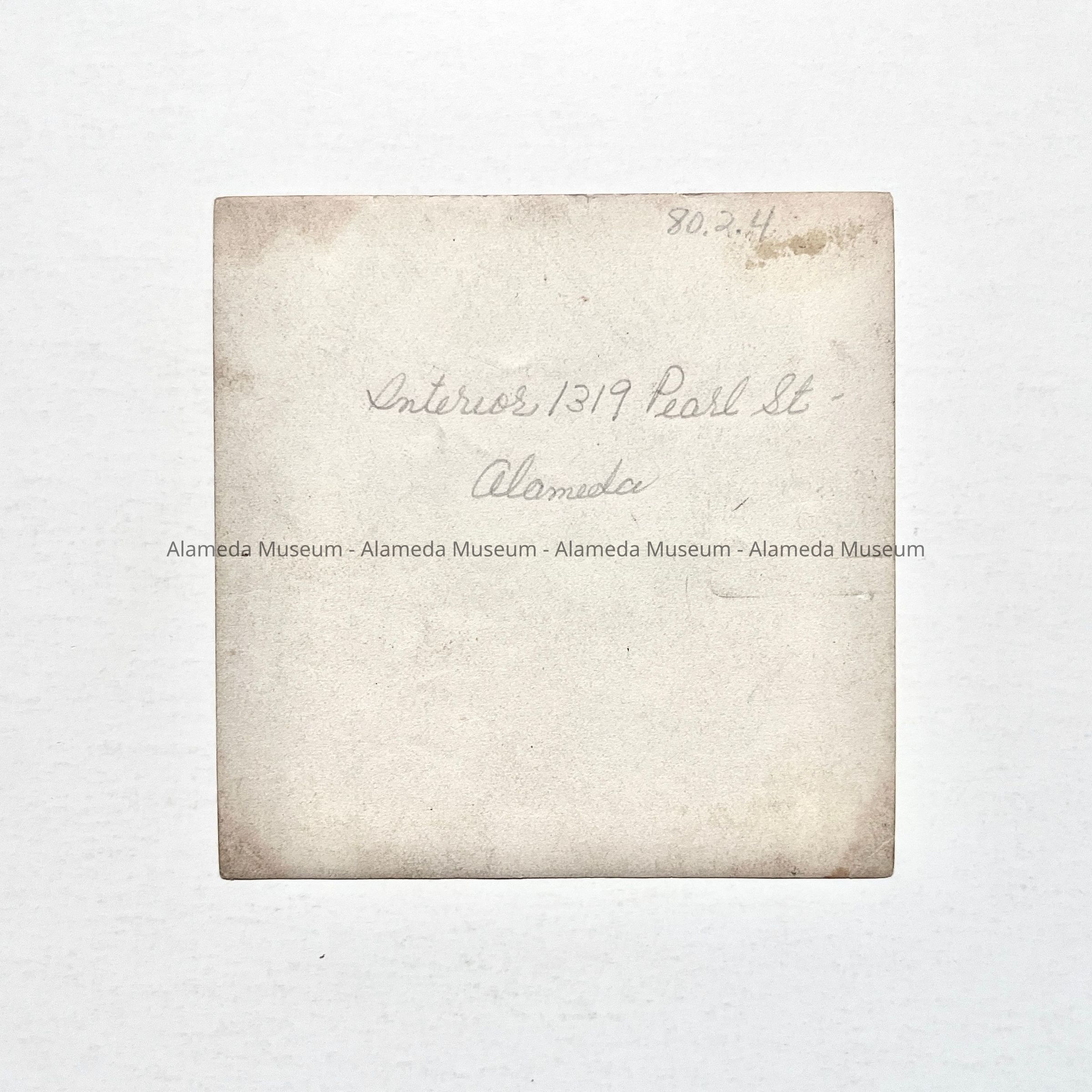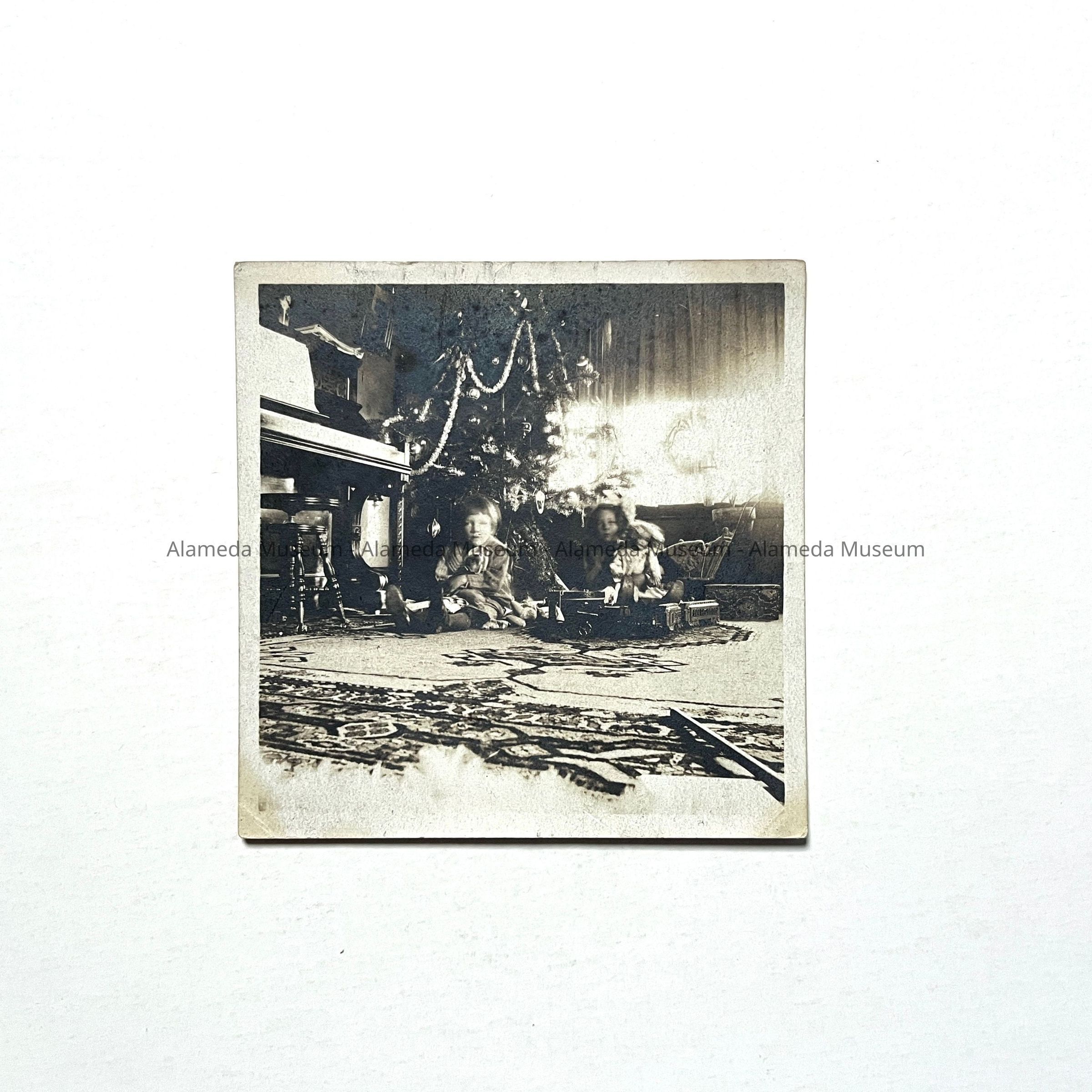 History of Object: Two children playing under a Christmas tree in the parlor of 1319 Pearl street, Alameda, is depicted in this photograph, circa 1900.