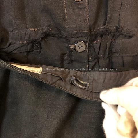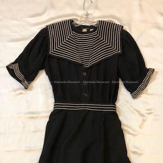 History of Object: Ladies bathing suit (circa-1912), from Sunny Cove Beach, 456 Central Avenue, Alameda, Ca. George H. & Bertha Masters, owners and proprietors. Now the present site of Paden School.