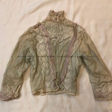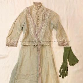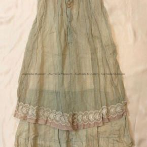 HISTORY OF OBJECTS: A TWO-PIECE GARMENT WORN BY MRS. ELLEN GRAZZINI WHO EMIGRATED FROM AUSTRALIA. FAMILY RESIDED AT 2106 ALAMEDA AVENUE.