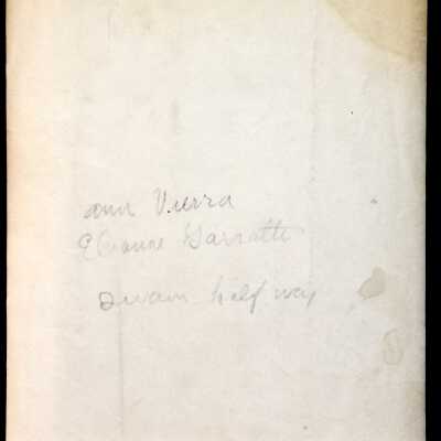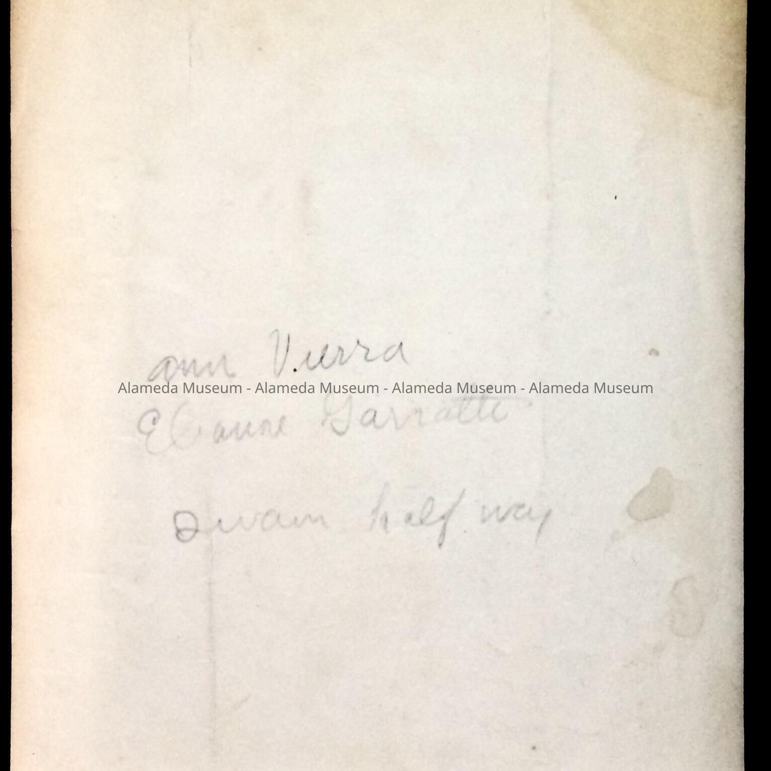 A PHOTO OF TWO FEMALE SWIMMERS WEARING ONE-PIECE SWIMSUITS. REVERSE SIDE OF PHOTO DISPLAYS HANDWRITTEN NAMES AND COMMENT, "ELAINE BARRETTI ANN VIERRA SWAM HALF WAY." THOSE FEMALES WERE CONTEMPORARIES OF BUNNY FERGUS.