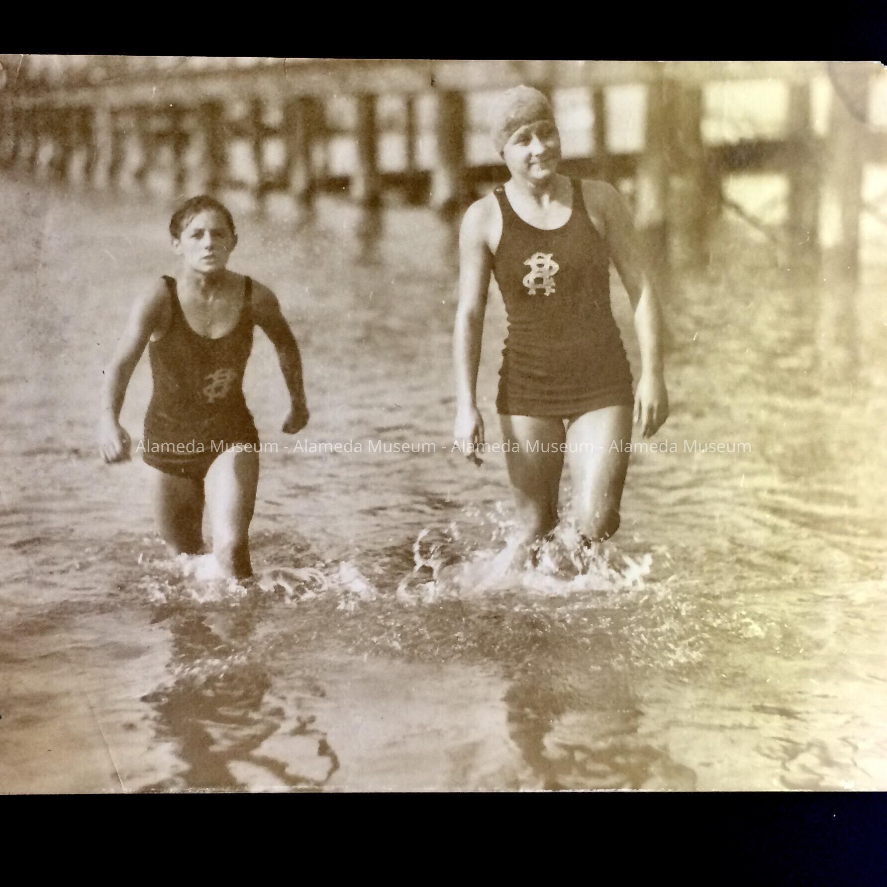 Two swimmers wearing one-piece swimsuits, c. 1920sEntry/Object ID