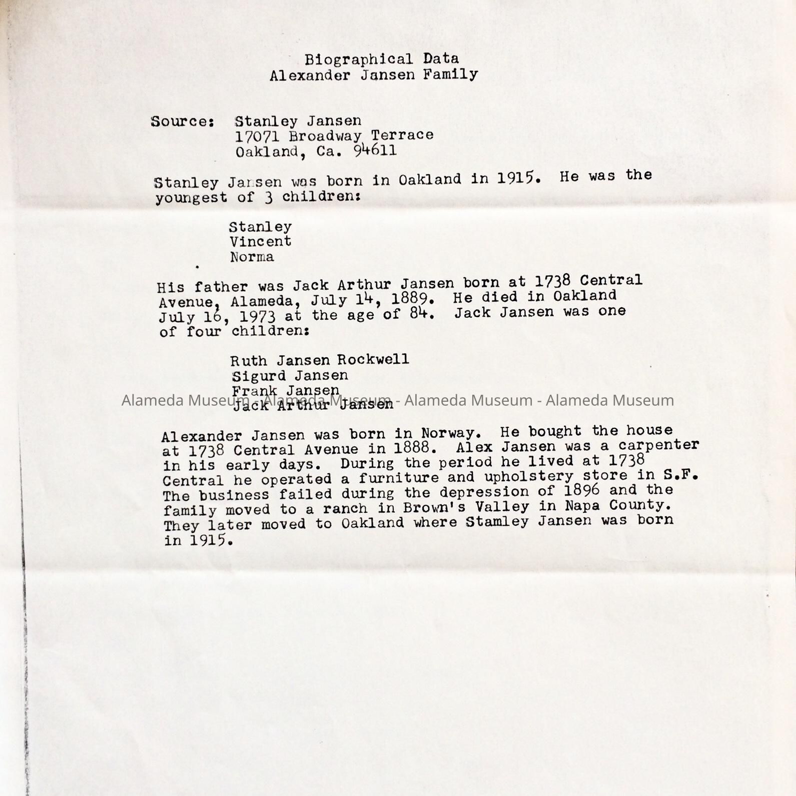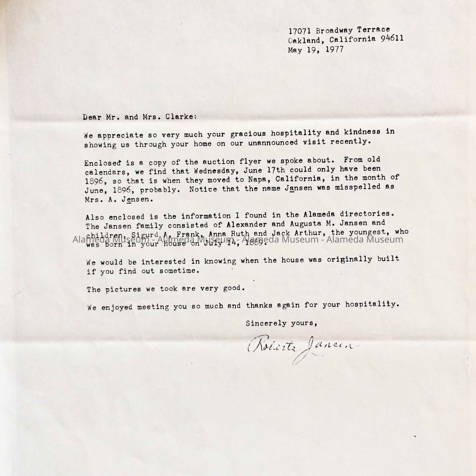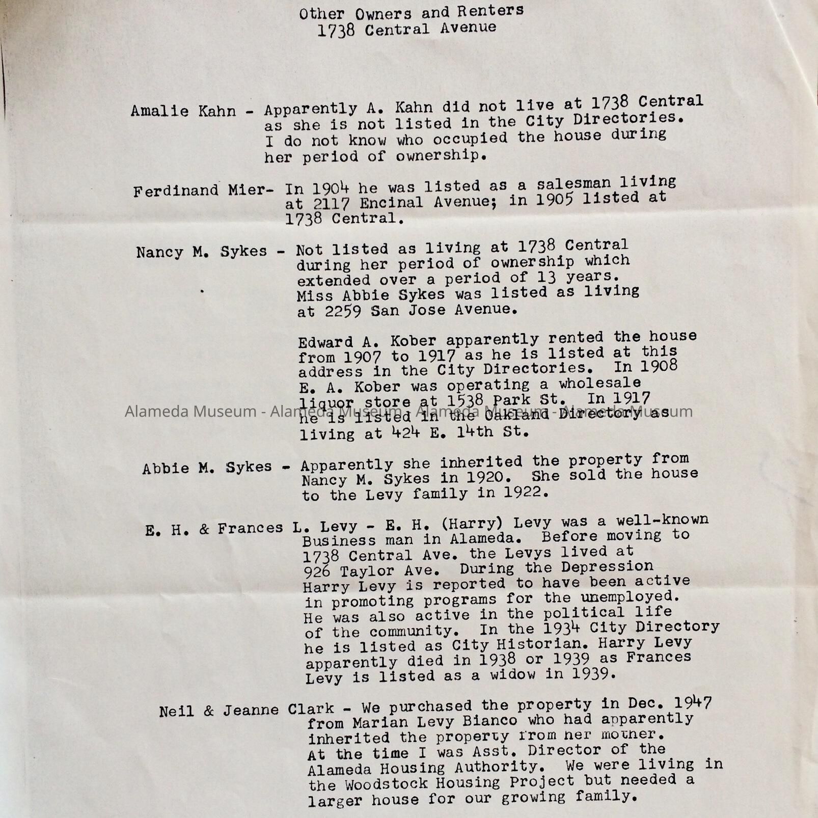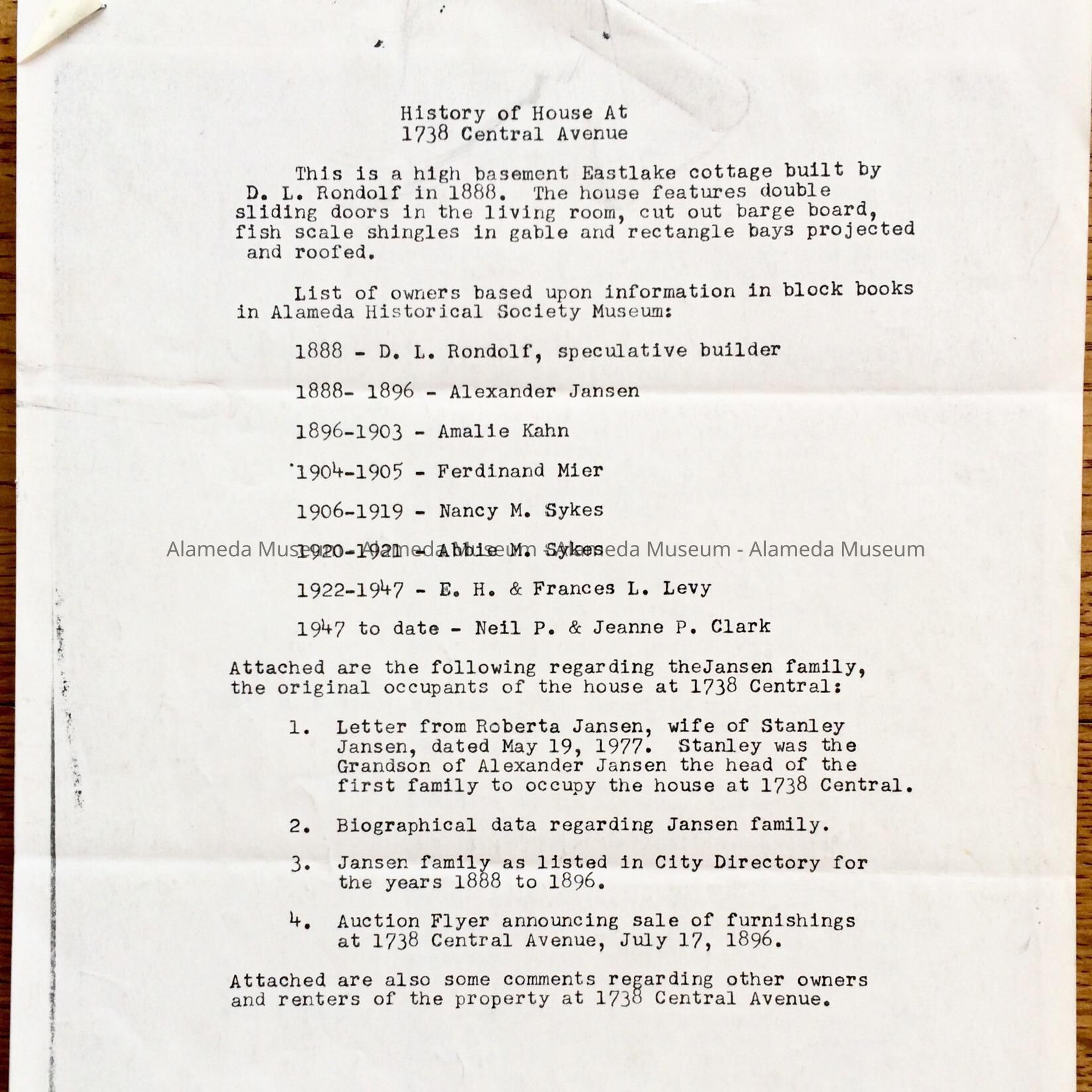 Typed 'History of House at 1738 Central Avenue', by Mr. and Mrs. Clark, c. 1977Entry/Object ID