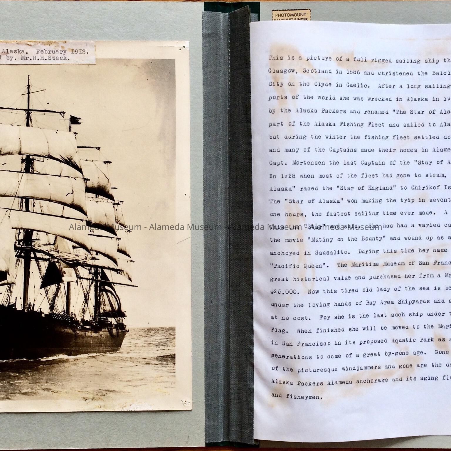 History: History of the sailing ship Star of Alaska, part of the Alaska Packers fleet.