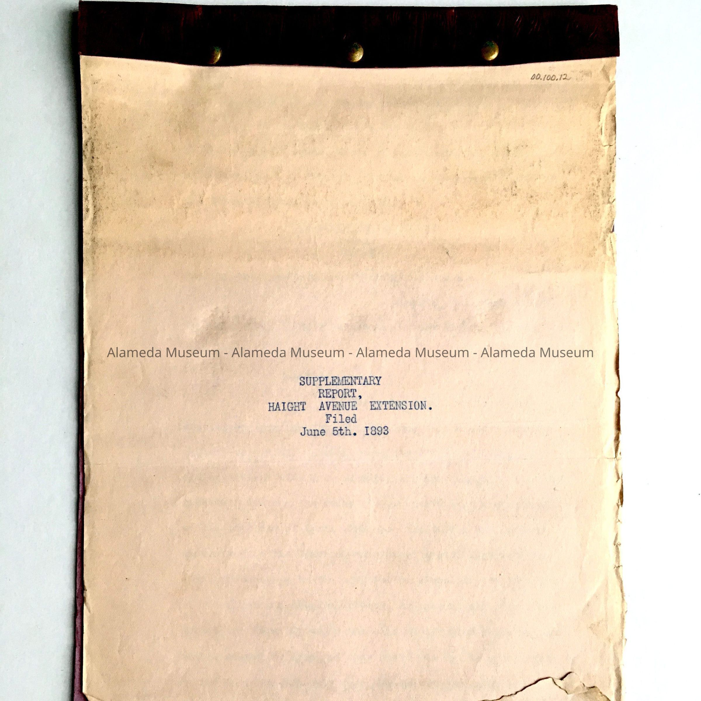 History: Supplementary report concerning the Haight Avenue extension filed June 5, 1893. The report also includes a list of property owners affected by the opening of Haight Avenue.